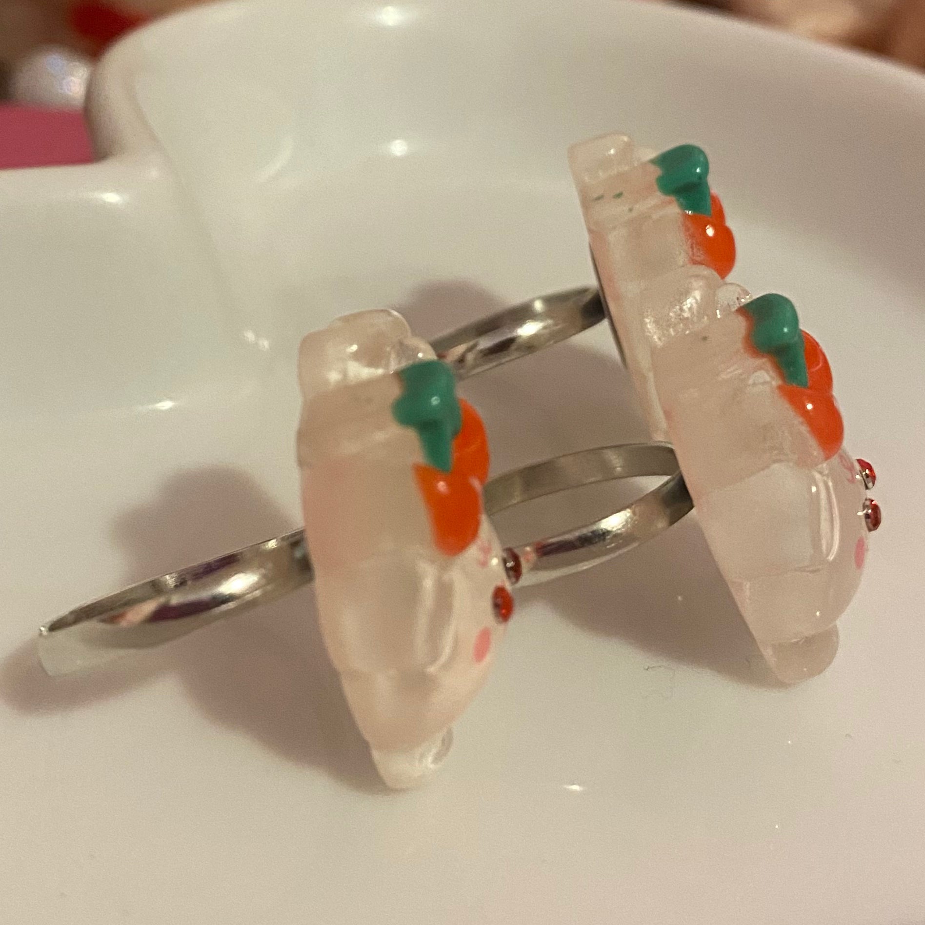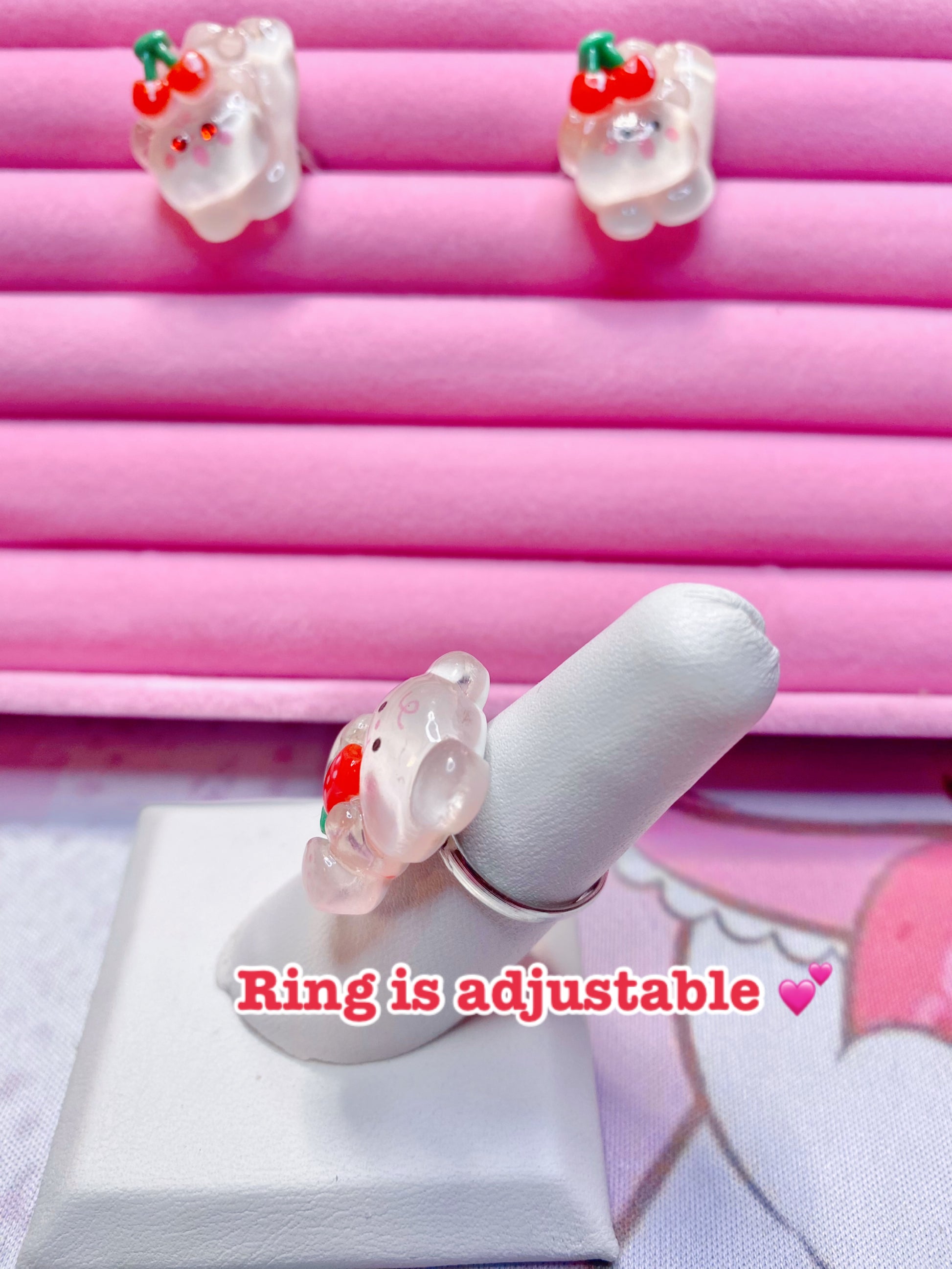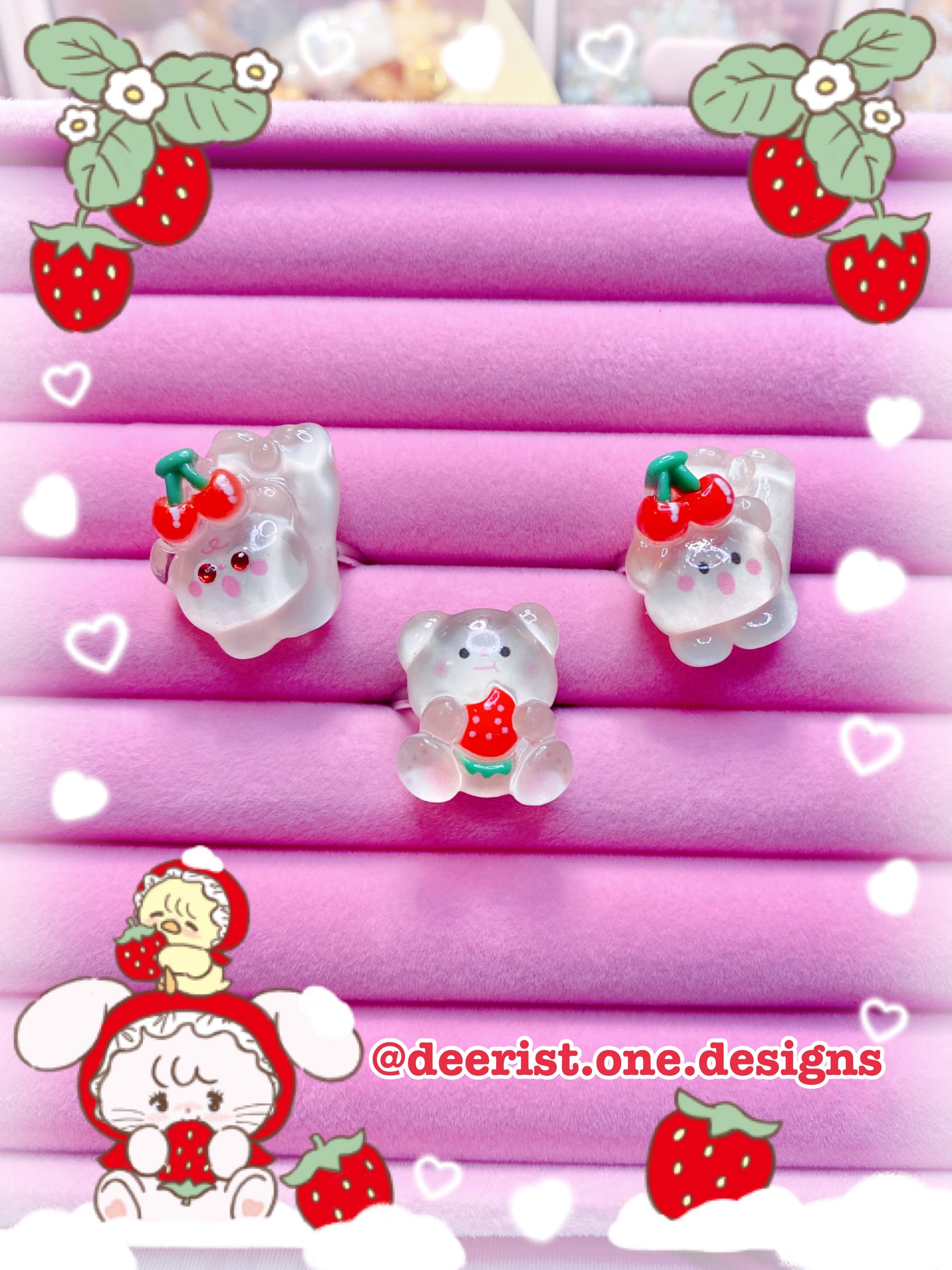 Cute little acrylic Bear with cherries 🍒 on its head and red rhinestone eyes