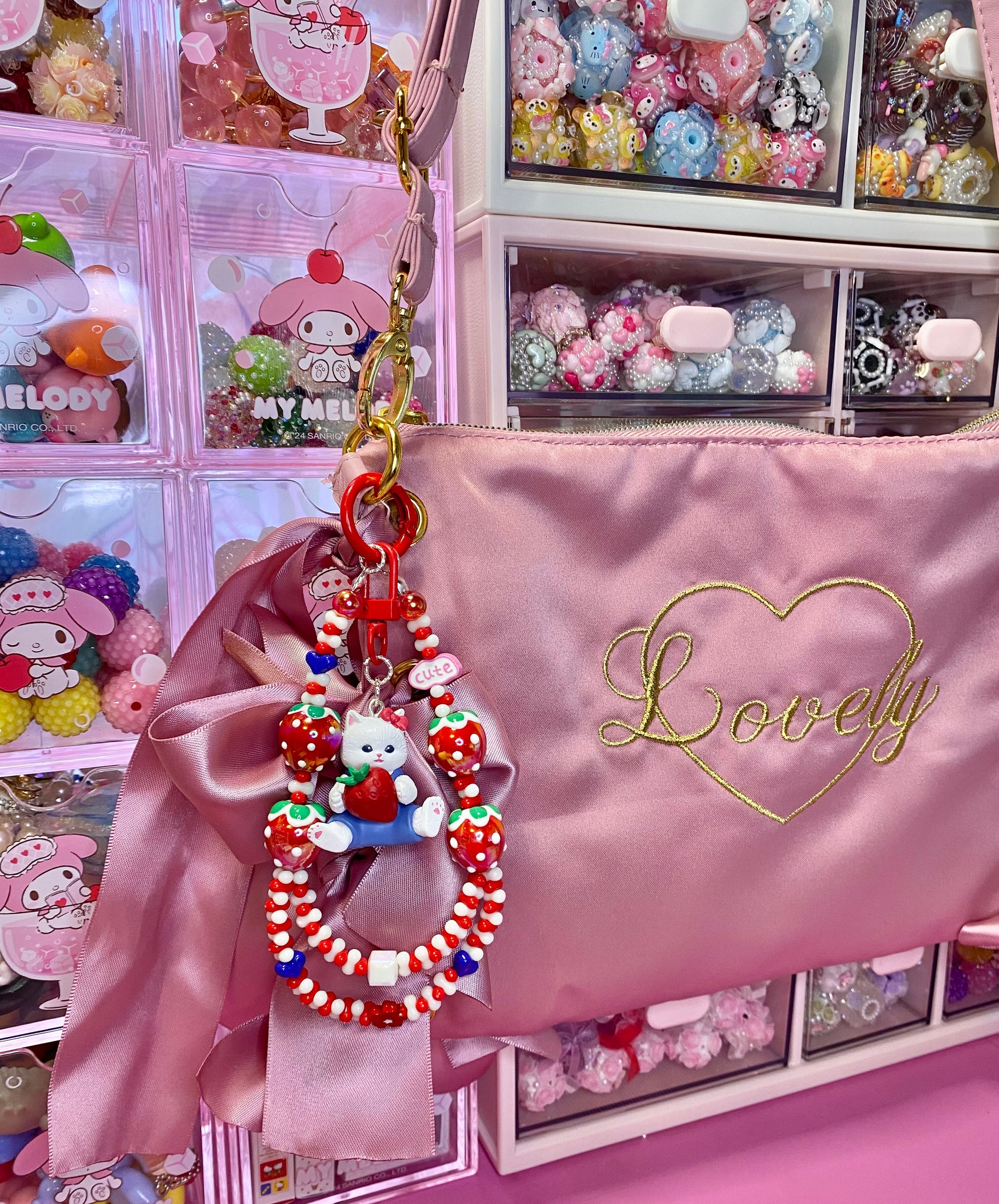 Hand arranged keychain/device strap with various hand painted beads and peanut beads