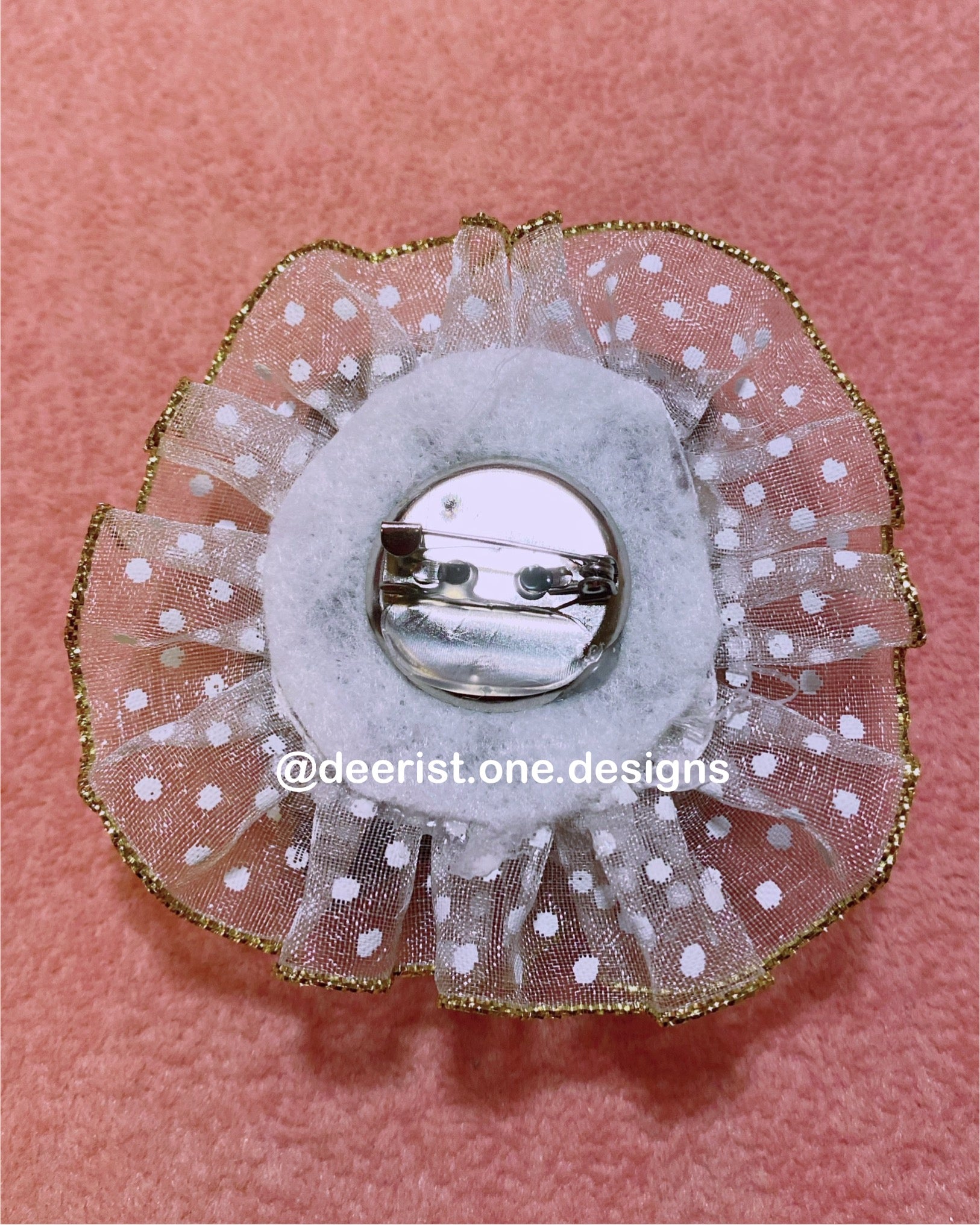 Brooch has a pin back with a cute bunny cookie center and lined with soft lace