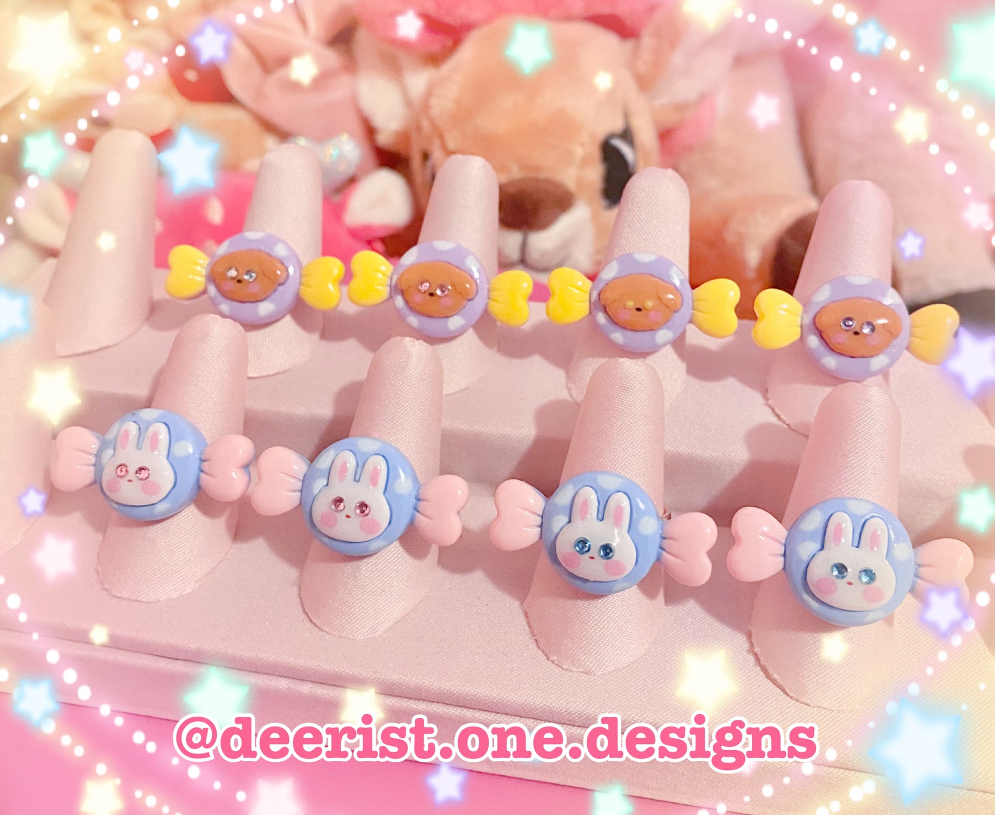 Cute adjustable Candy Bunny or Candy Puppy Rings