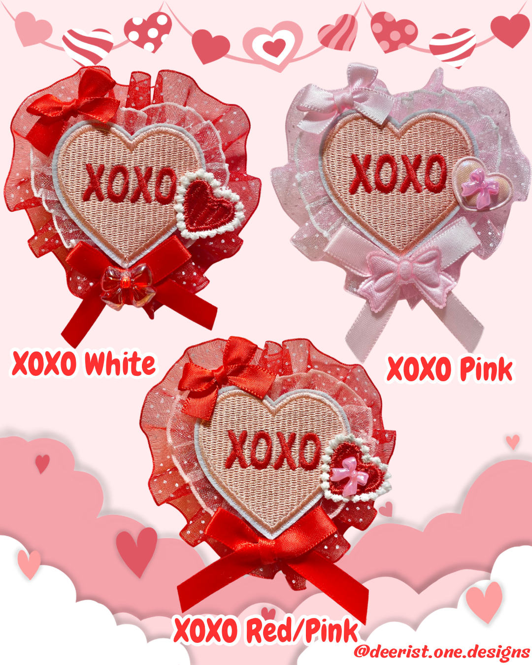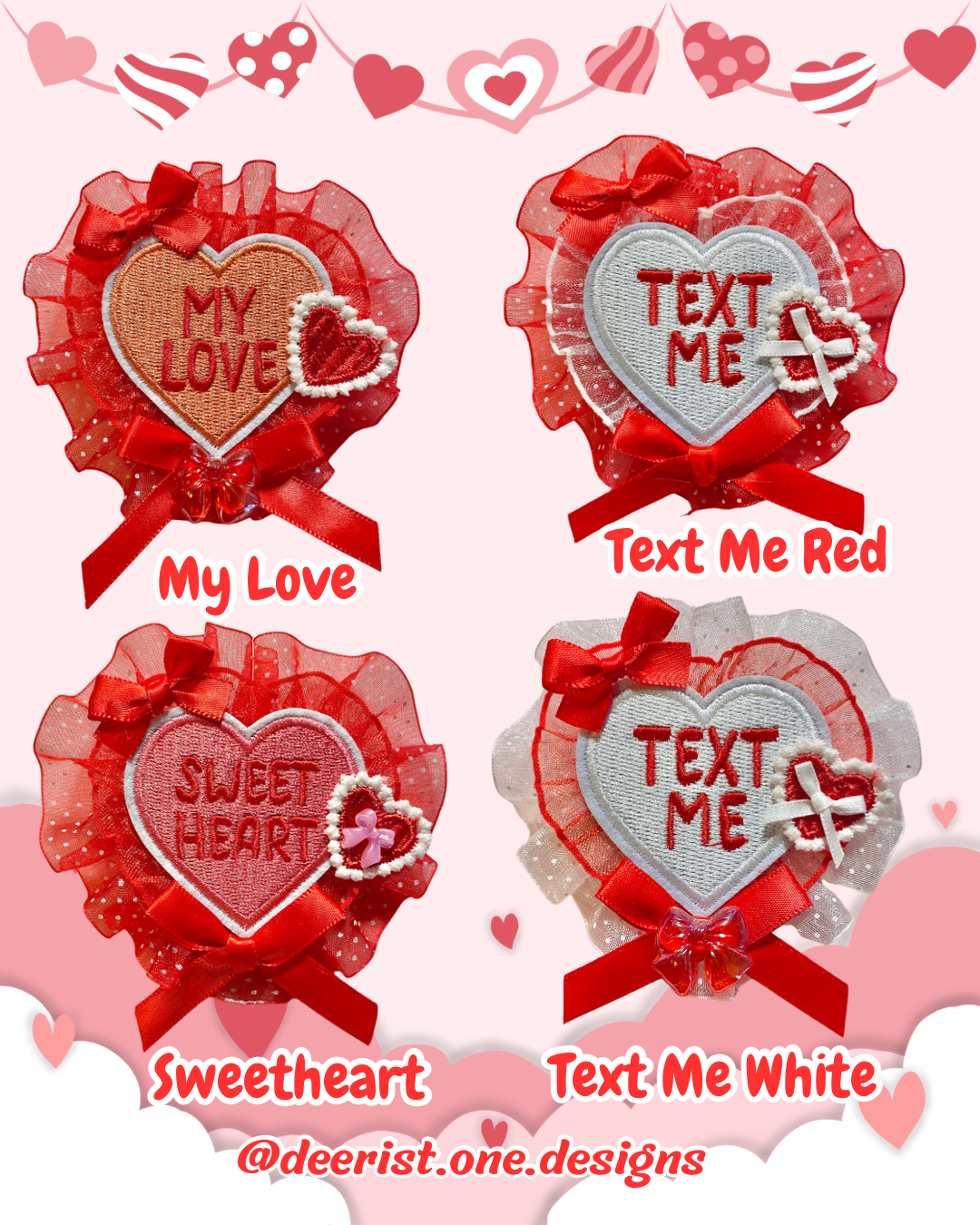 2-way Clip features cute conversation heart centerpiece with a small red heart and lots of bows to accent this one of a kind piece!