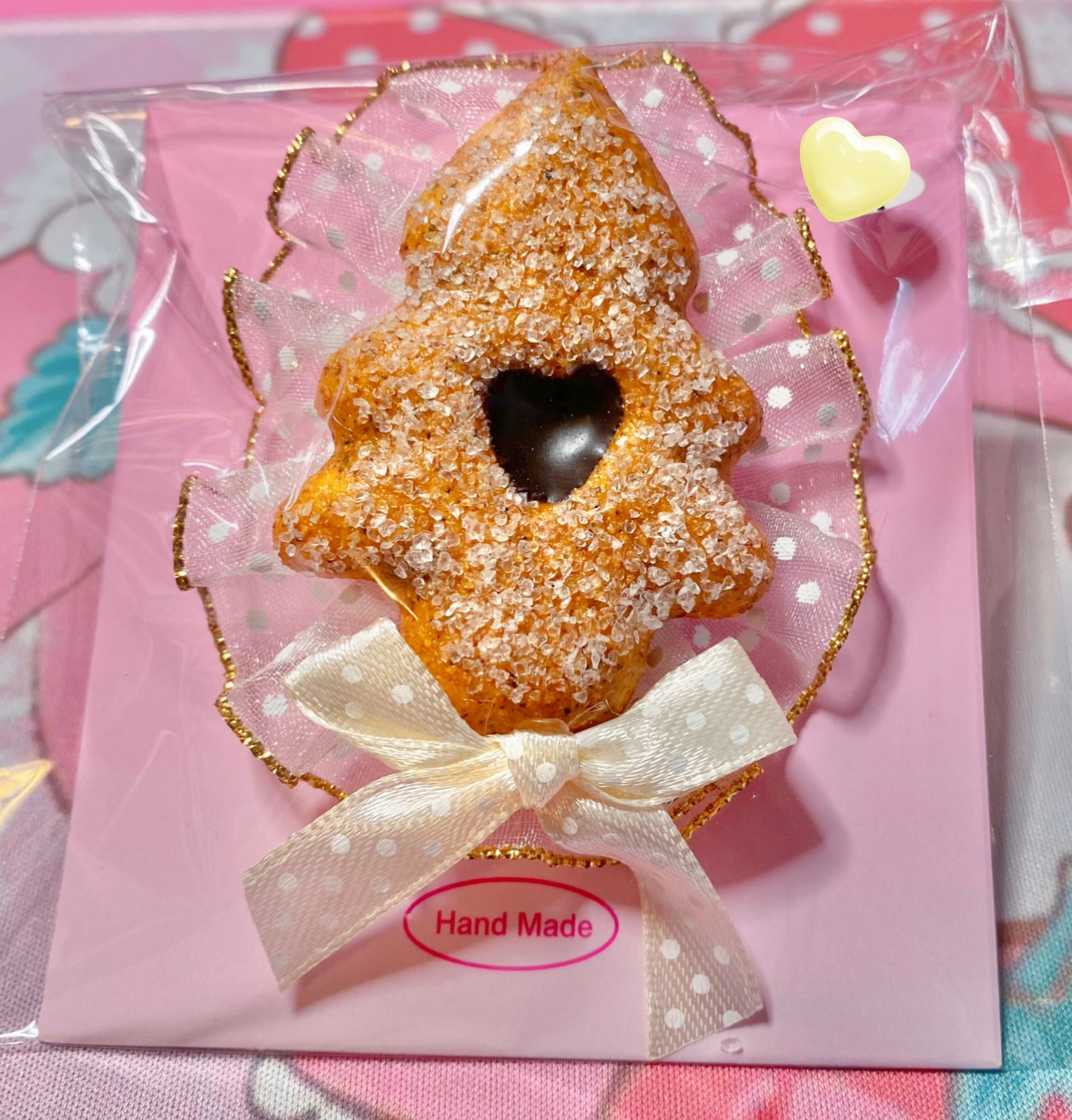 Clip features a 100% fake cookie centerpiece, lined with soft lace, and a bow!!!!