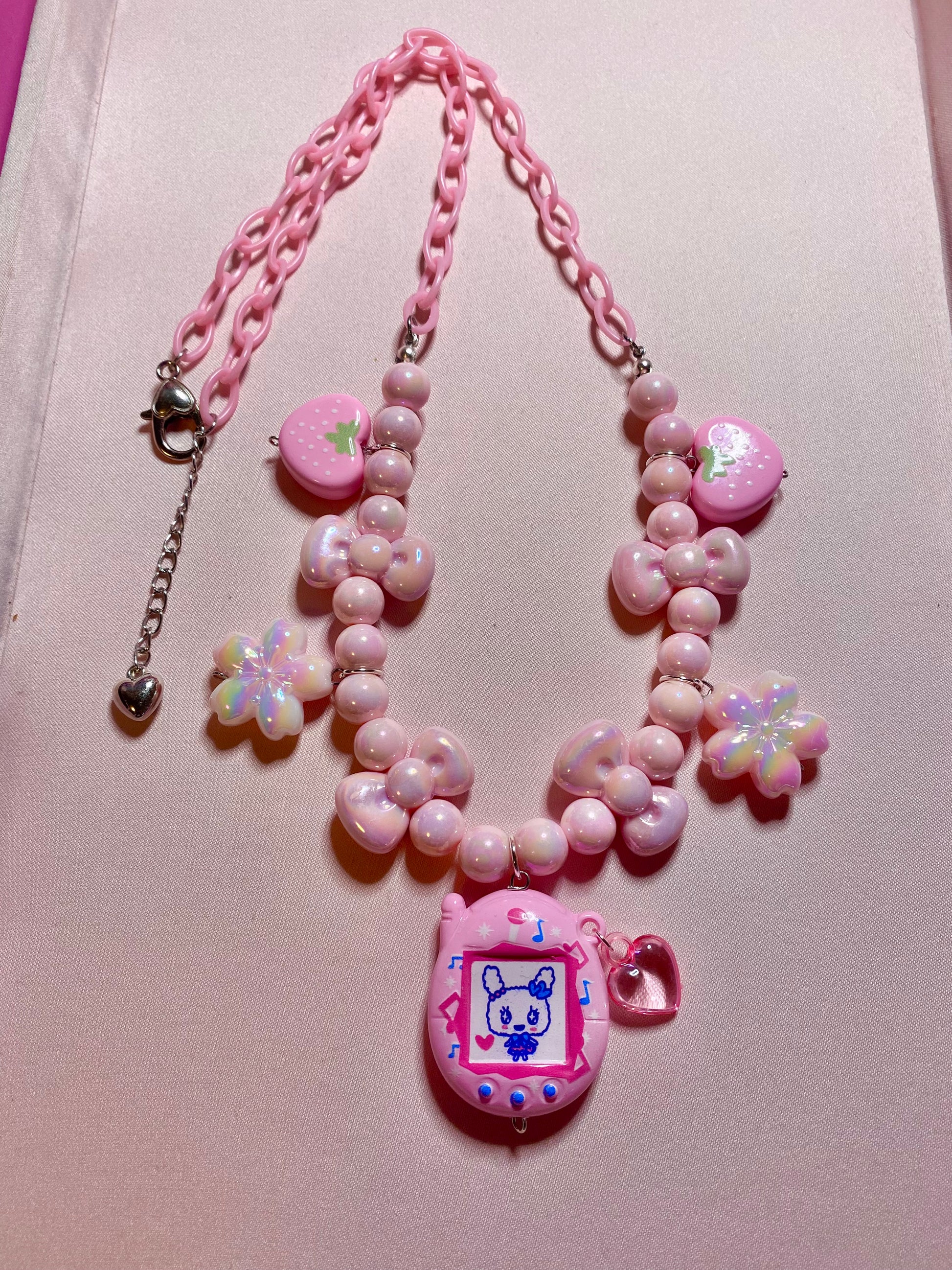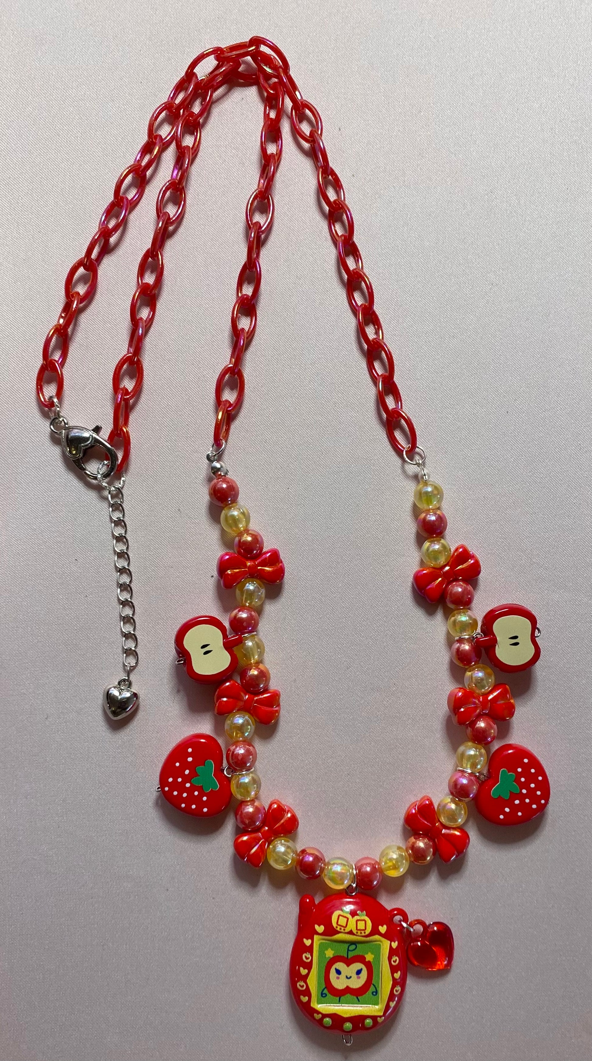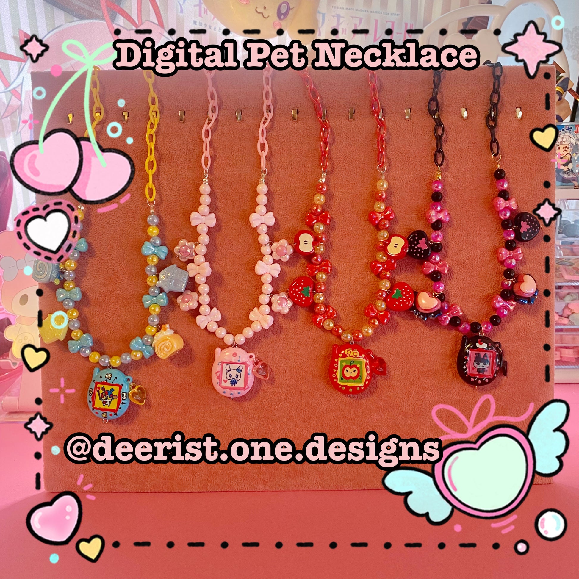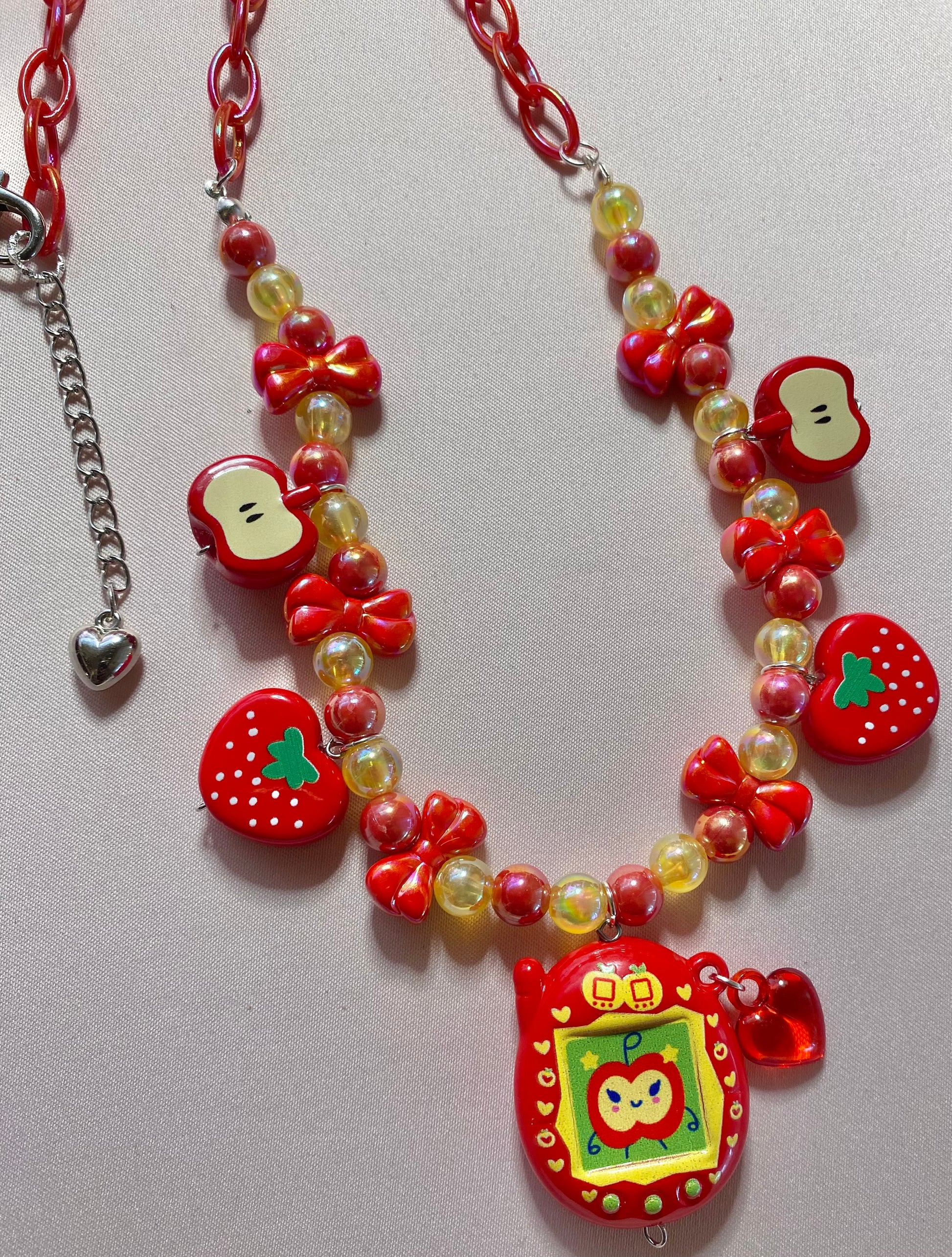 Necklace features Digital Pet charm, Strawberry bead accents and various beads to accent Digital Pet