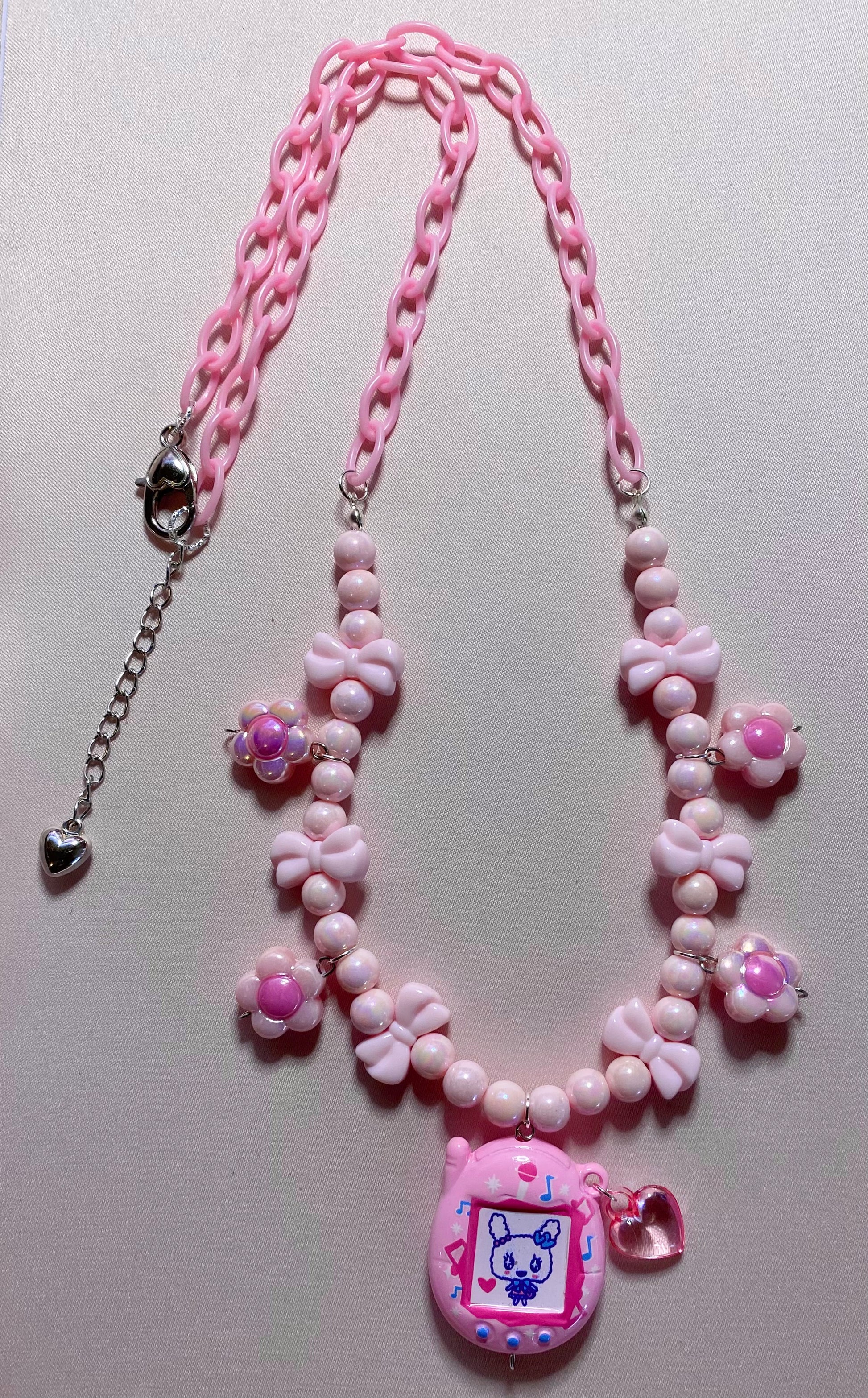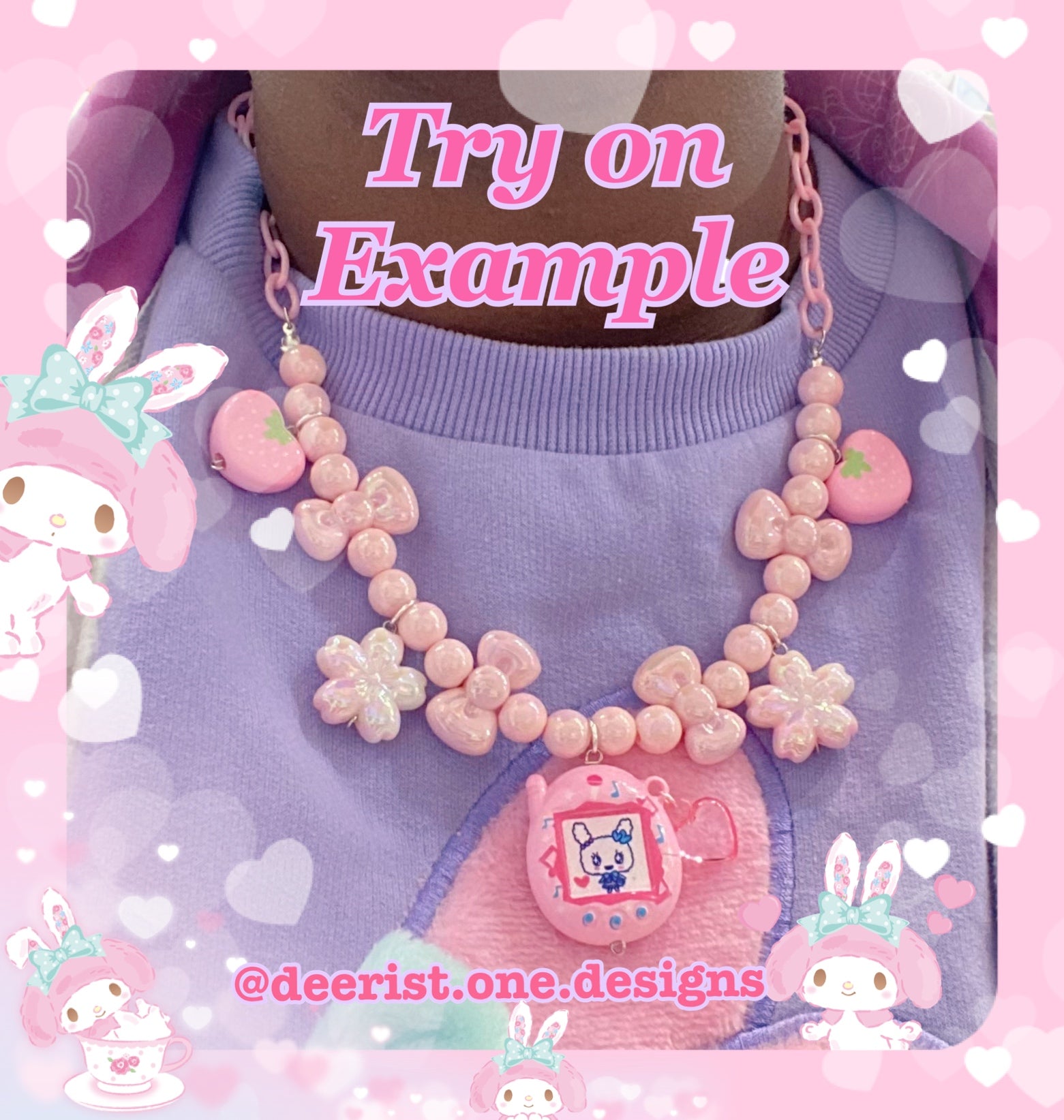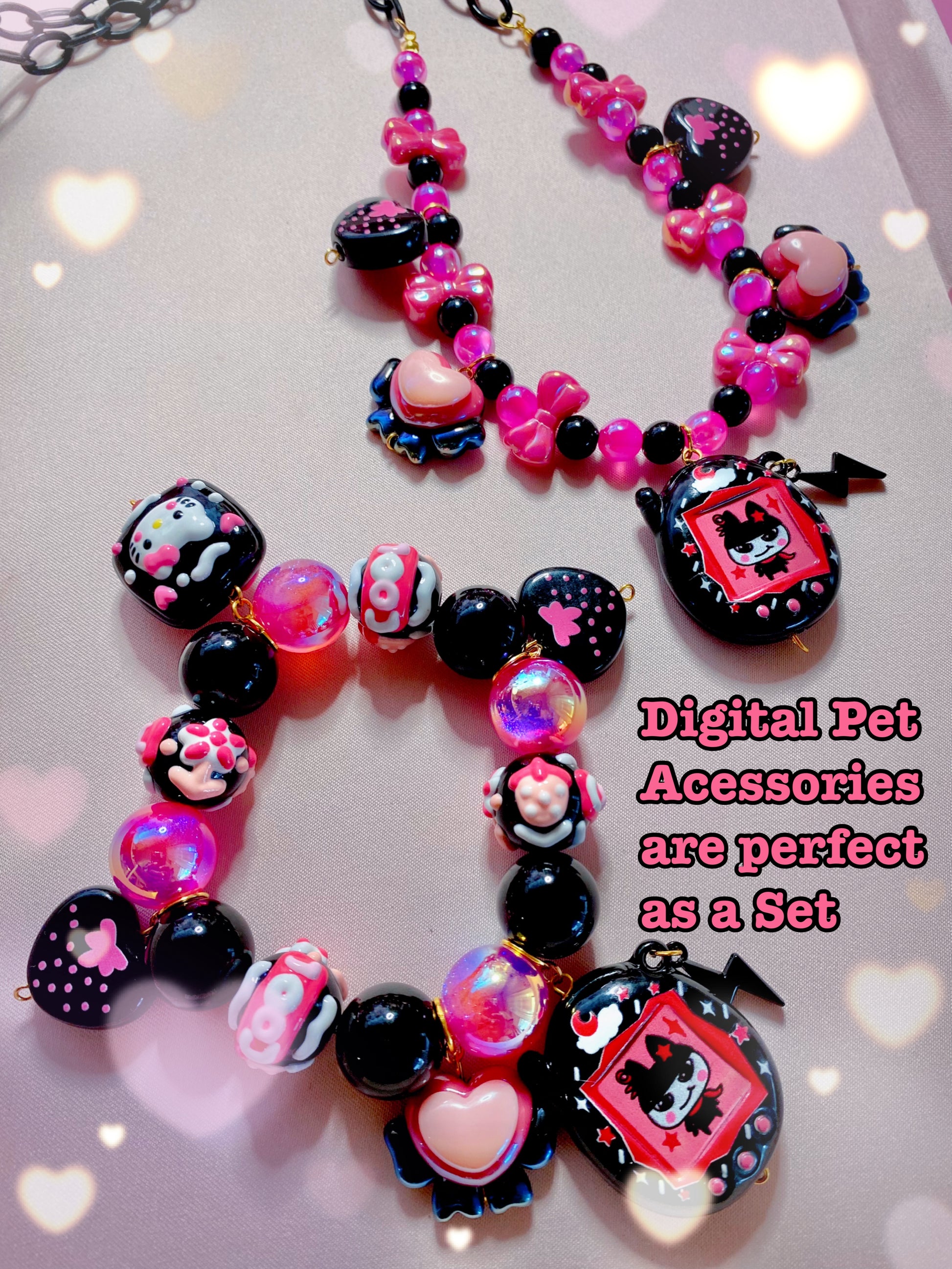 Necklace features Digital Pet charm, Strawberry bead accents and various beads to accent Digital Pet