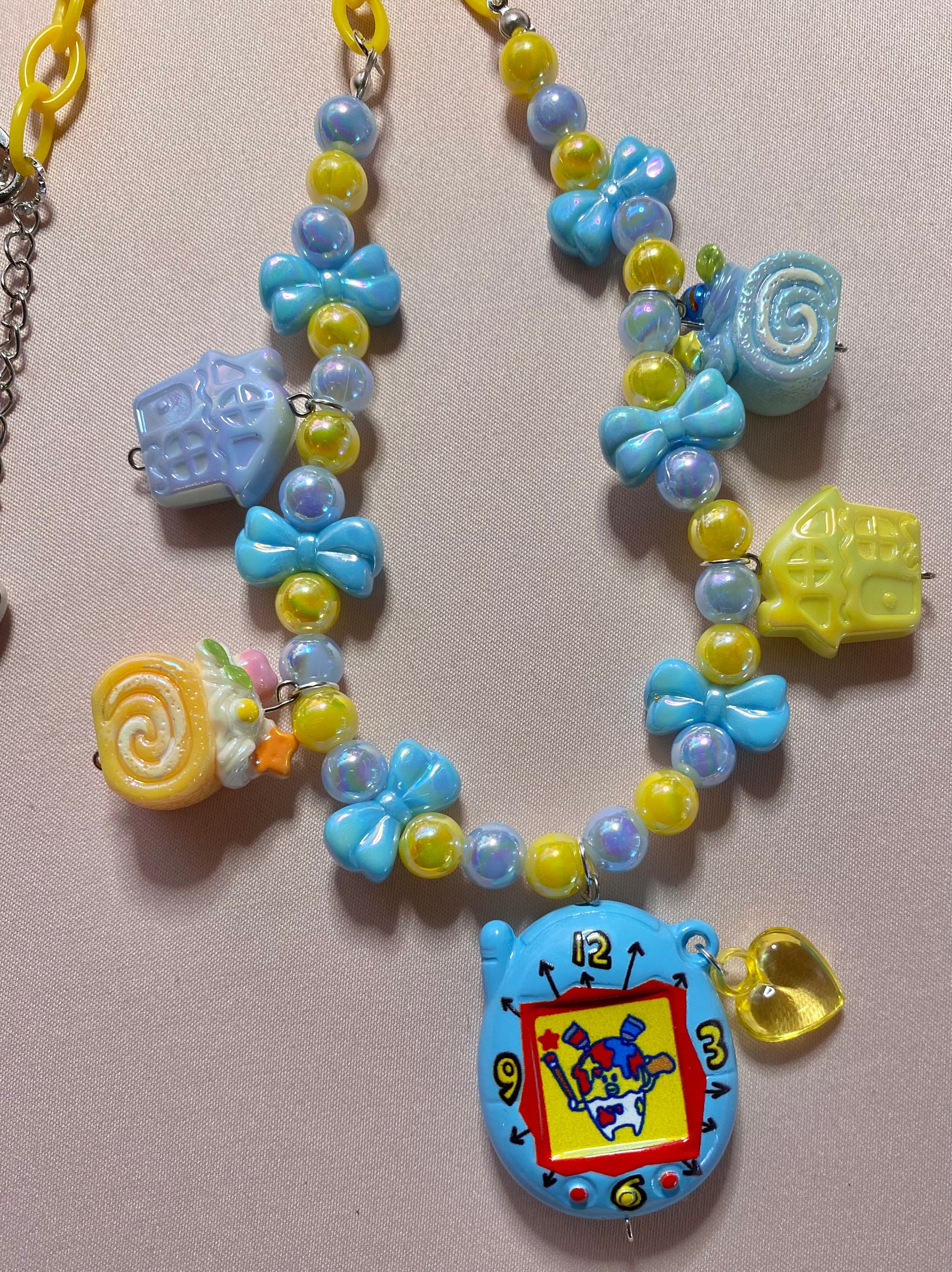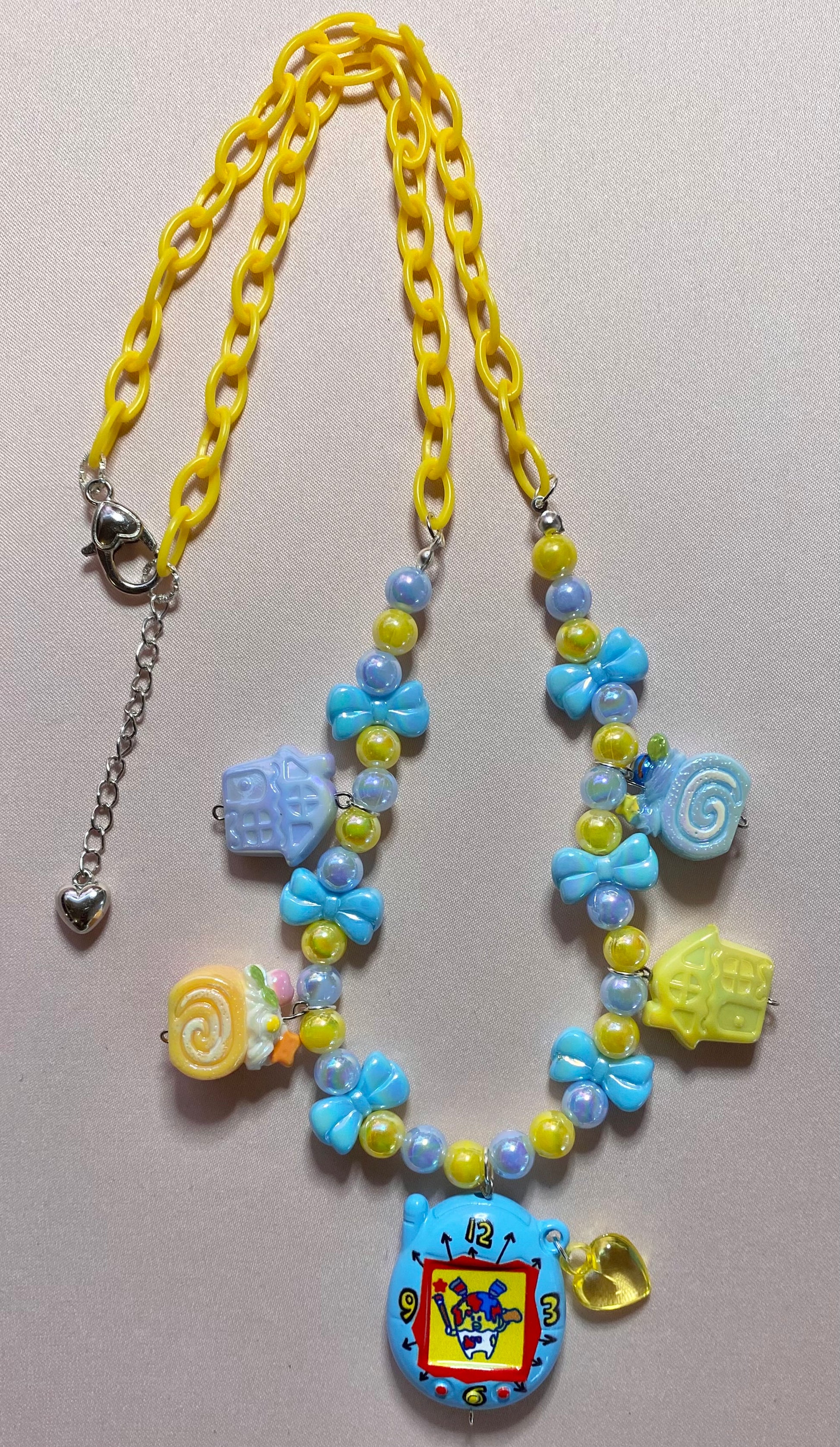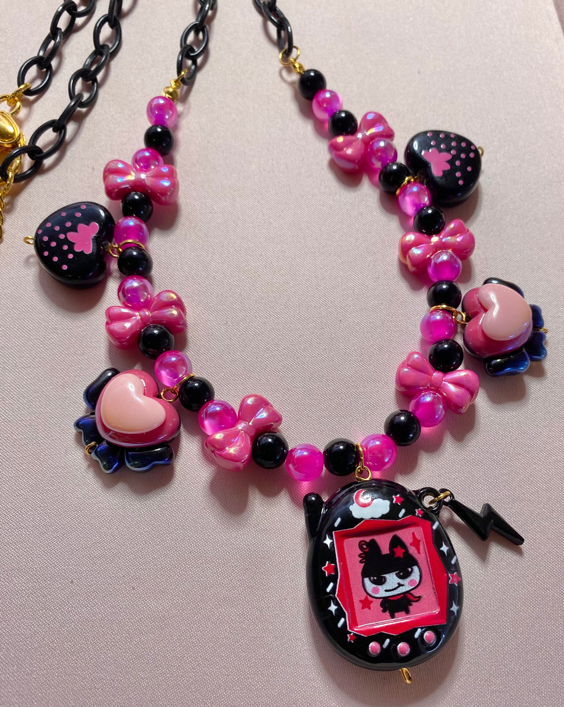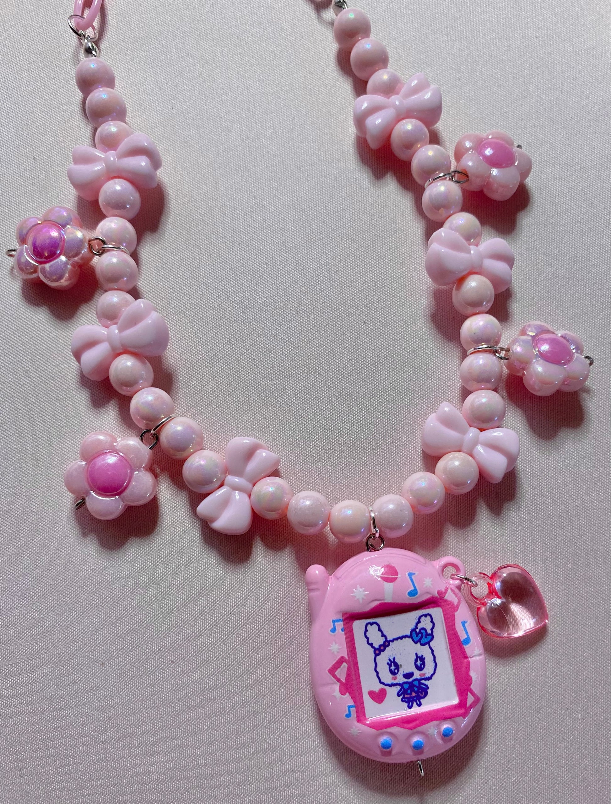 Necklace features Digital Pet charm, Strawberry bead accents and various beads to accent Digital Pet
