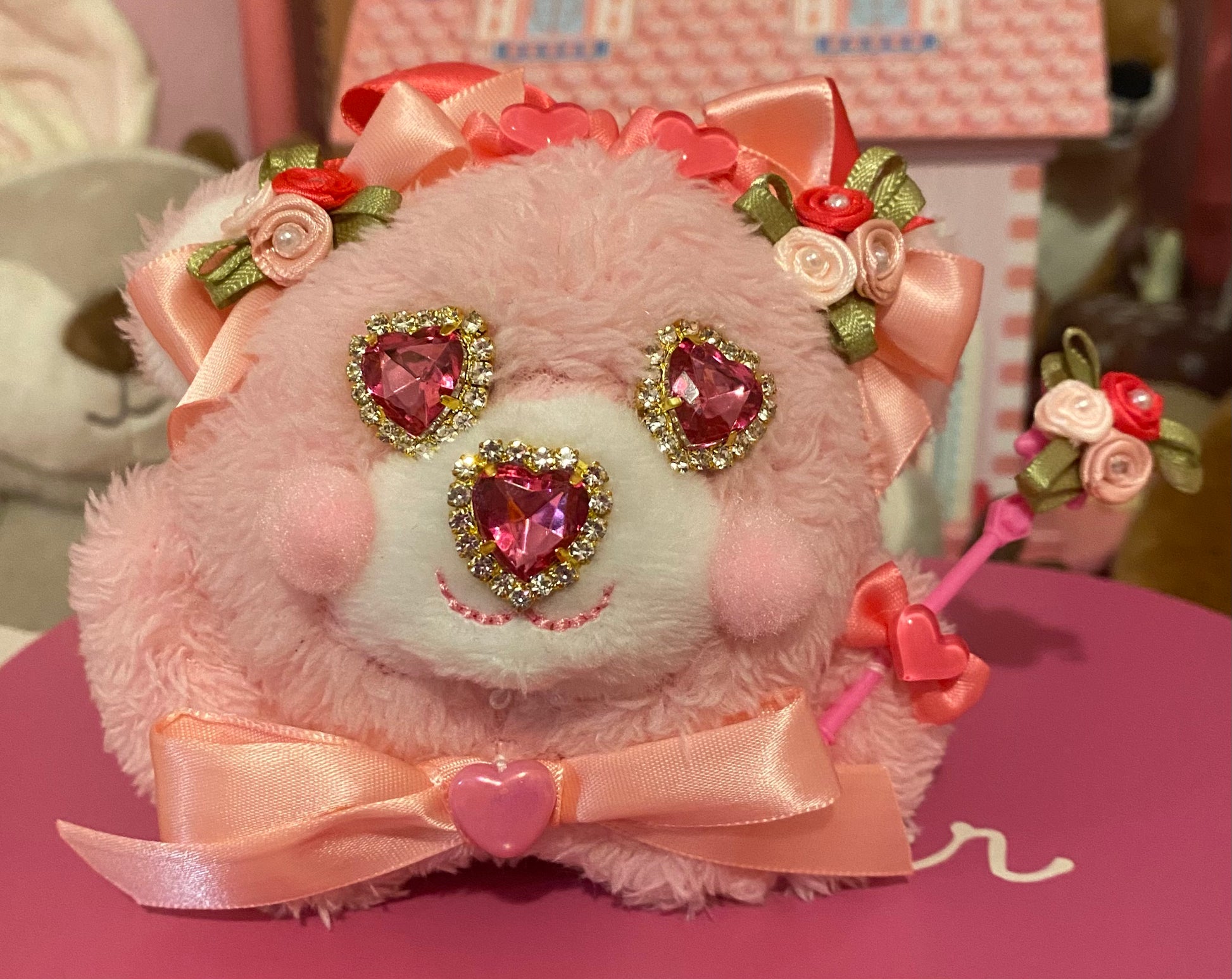 Flower bear has a hand arrange headpiece featuring tiny flower and a flower wand