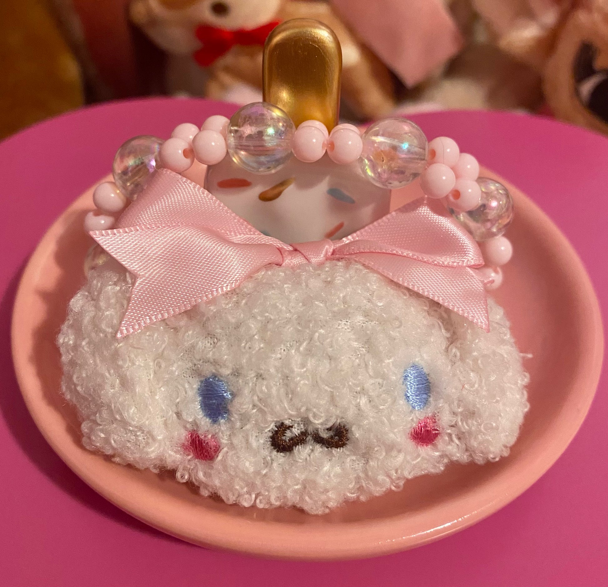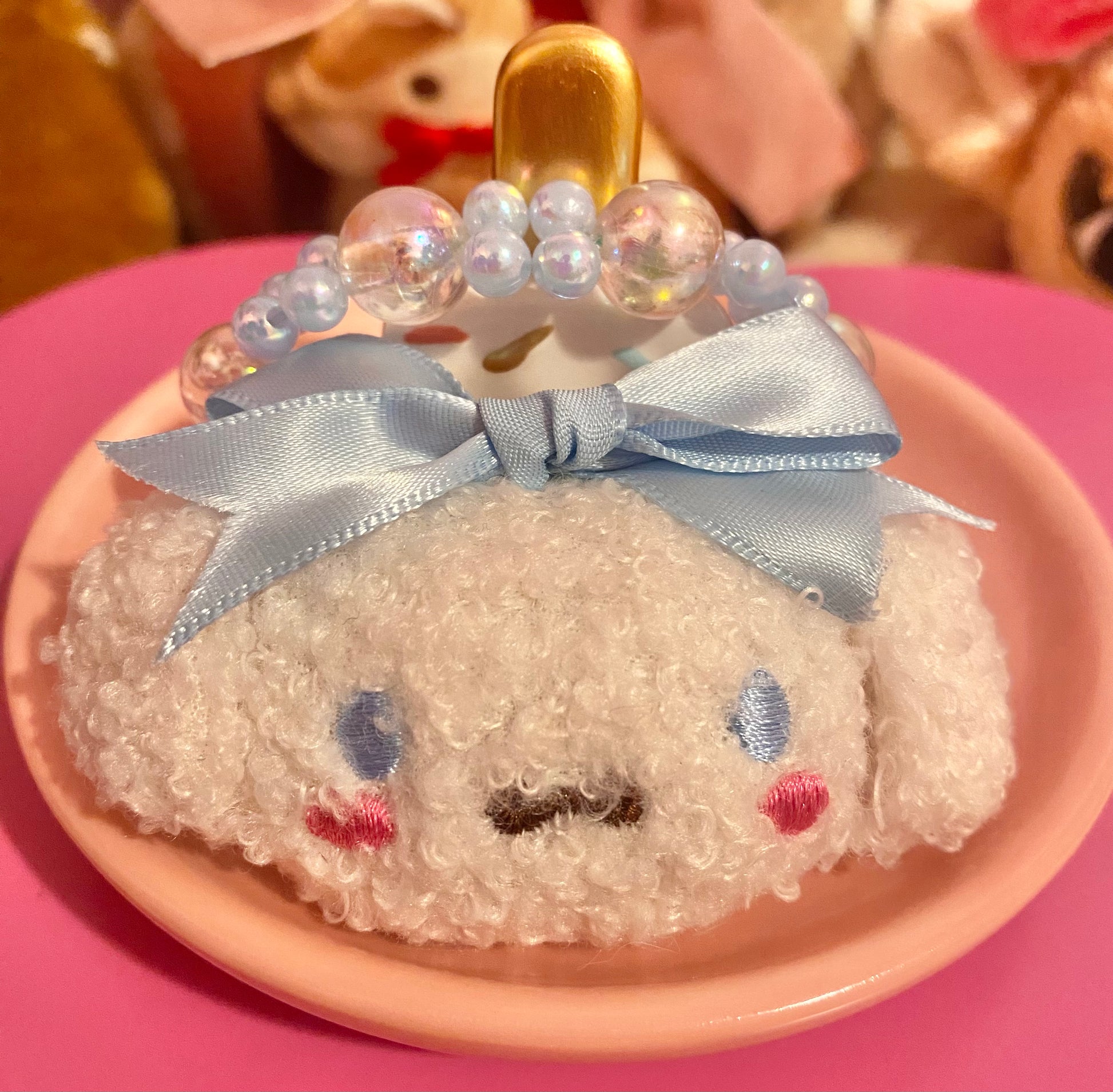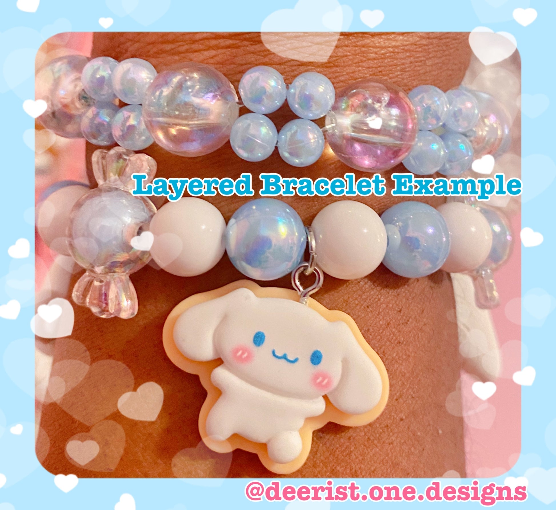 Cinna inspired hand beaded bracelet with a puppy center w/bow