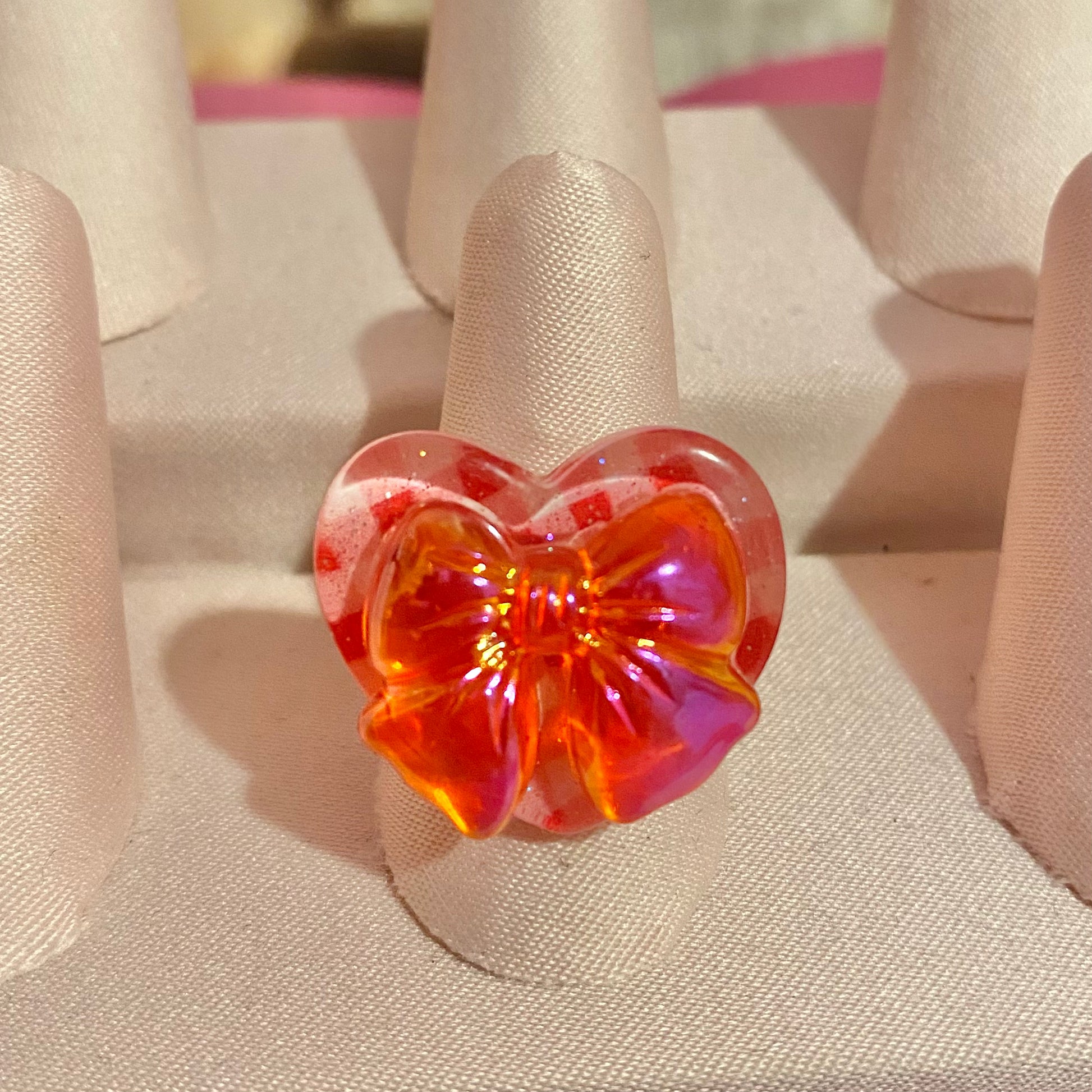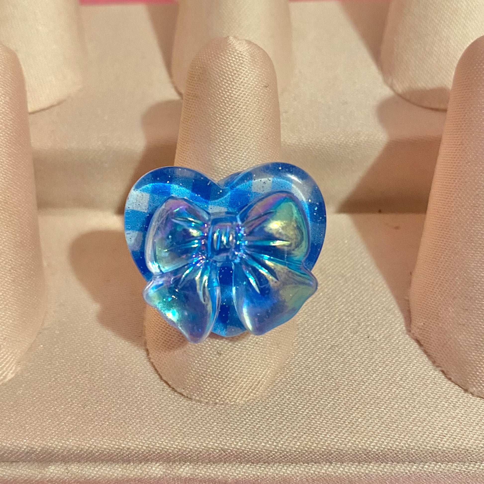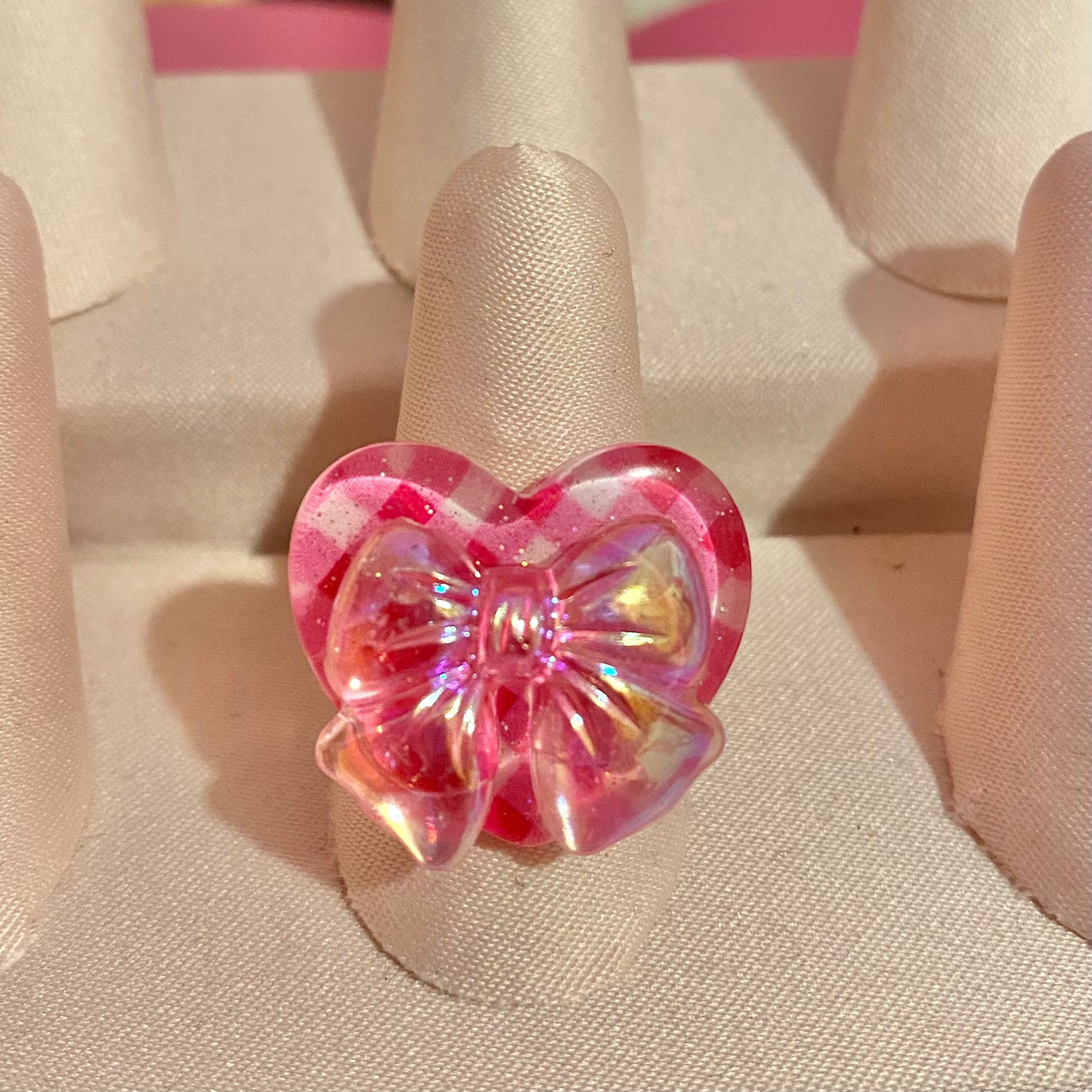 Sparkly Gingham heart finished with a iridescent bow in the center perfect for a picnic or your next Country Lolita look