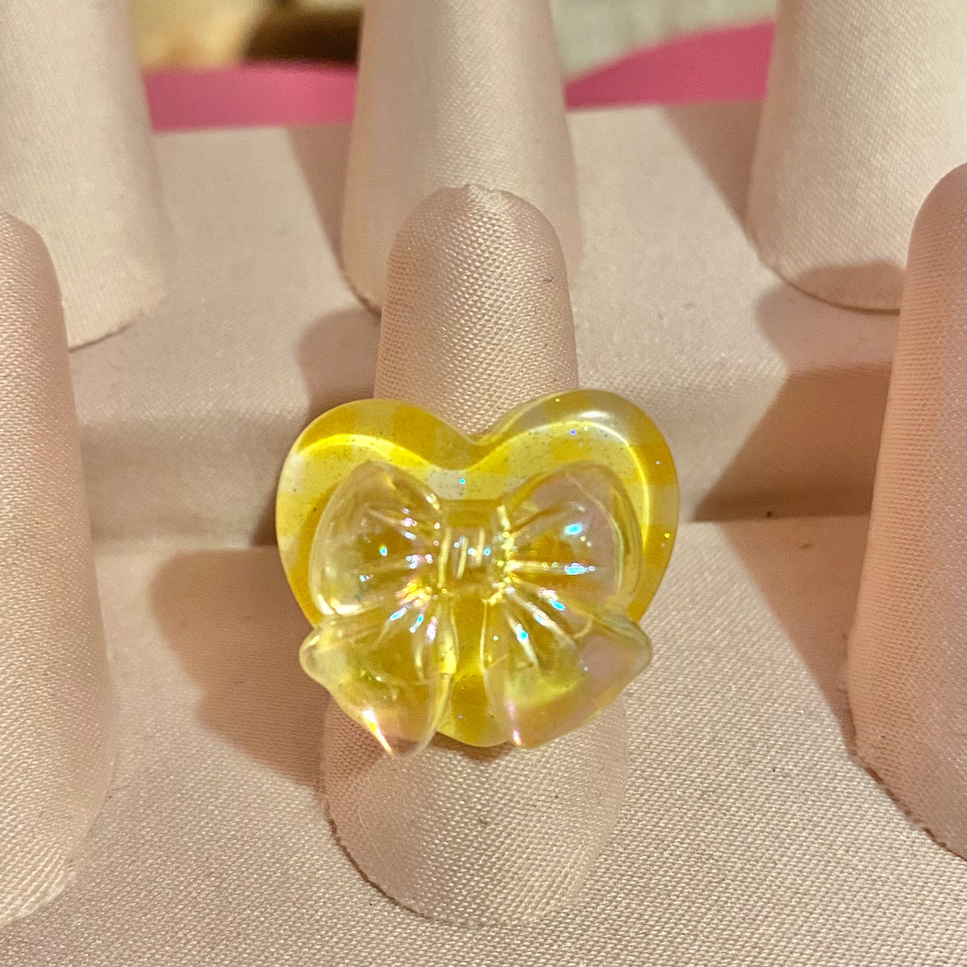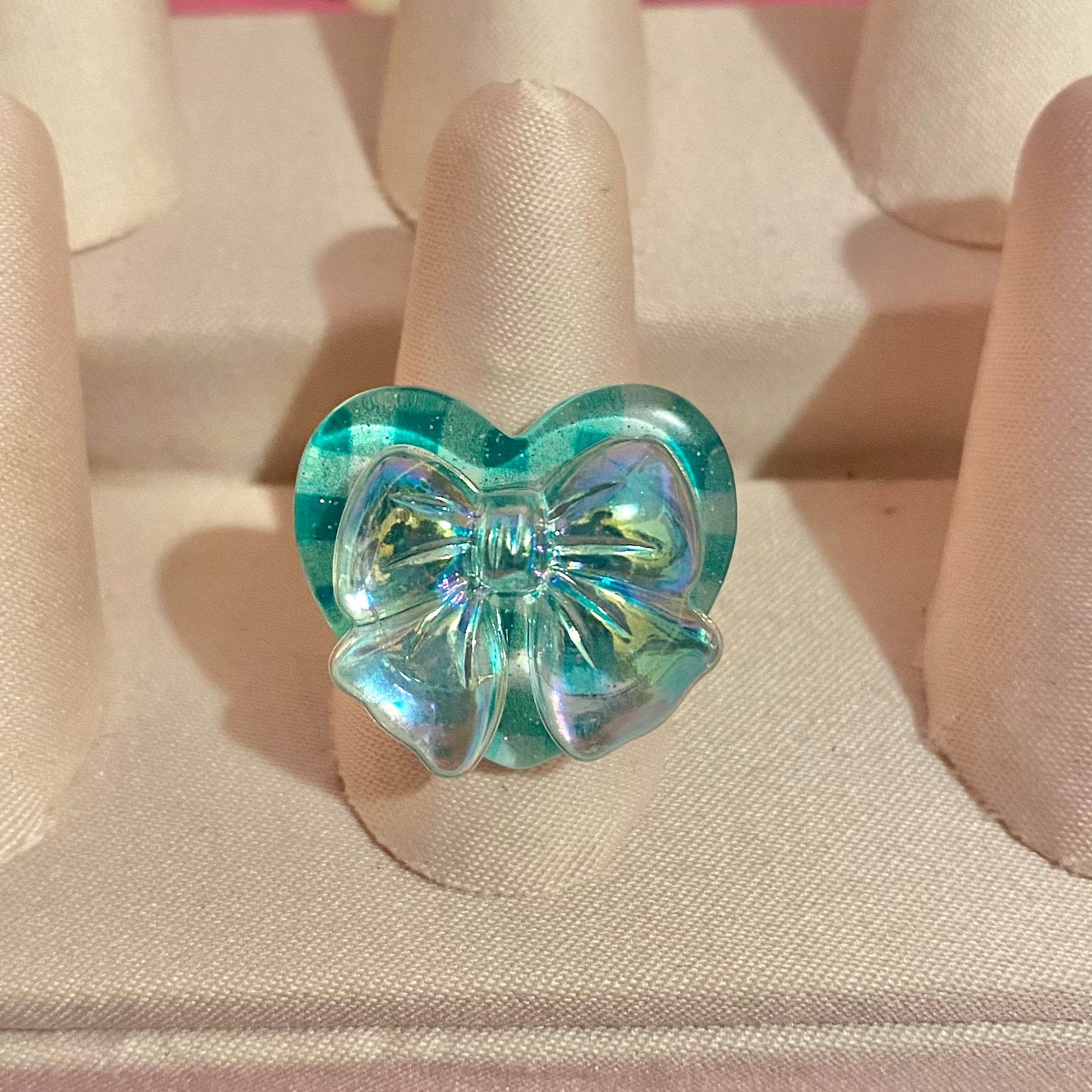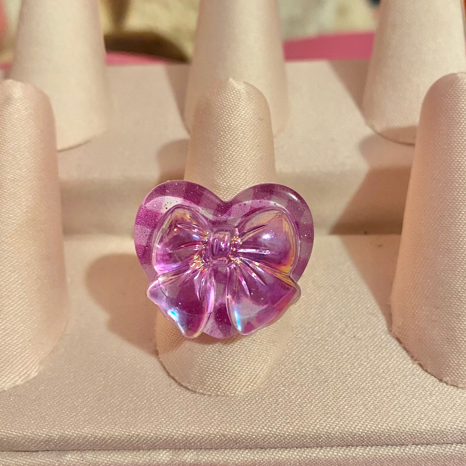 Sparkly Gingham heart finished with a iridescent bow in the center perfect for a picnic or your next Country Lolita look