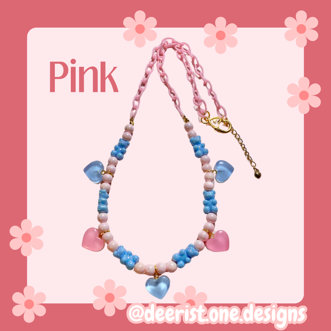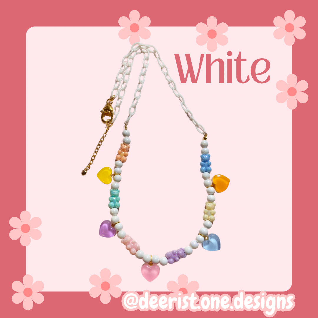 Gummy Bear necklace features Gummy Bear beads and gummy heart charmsÂ