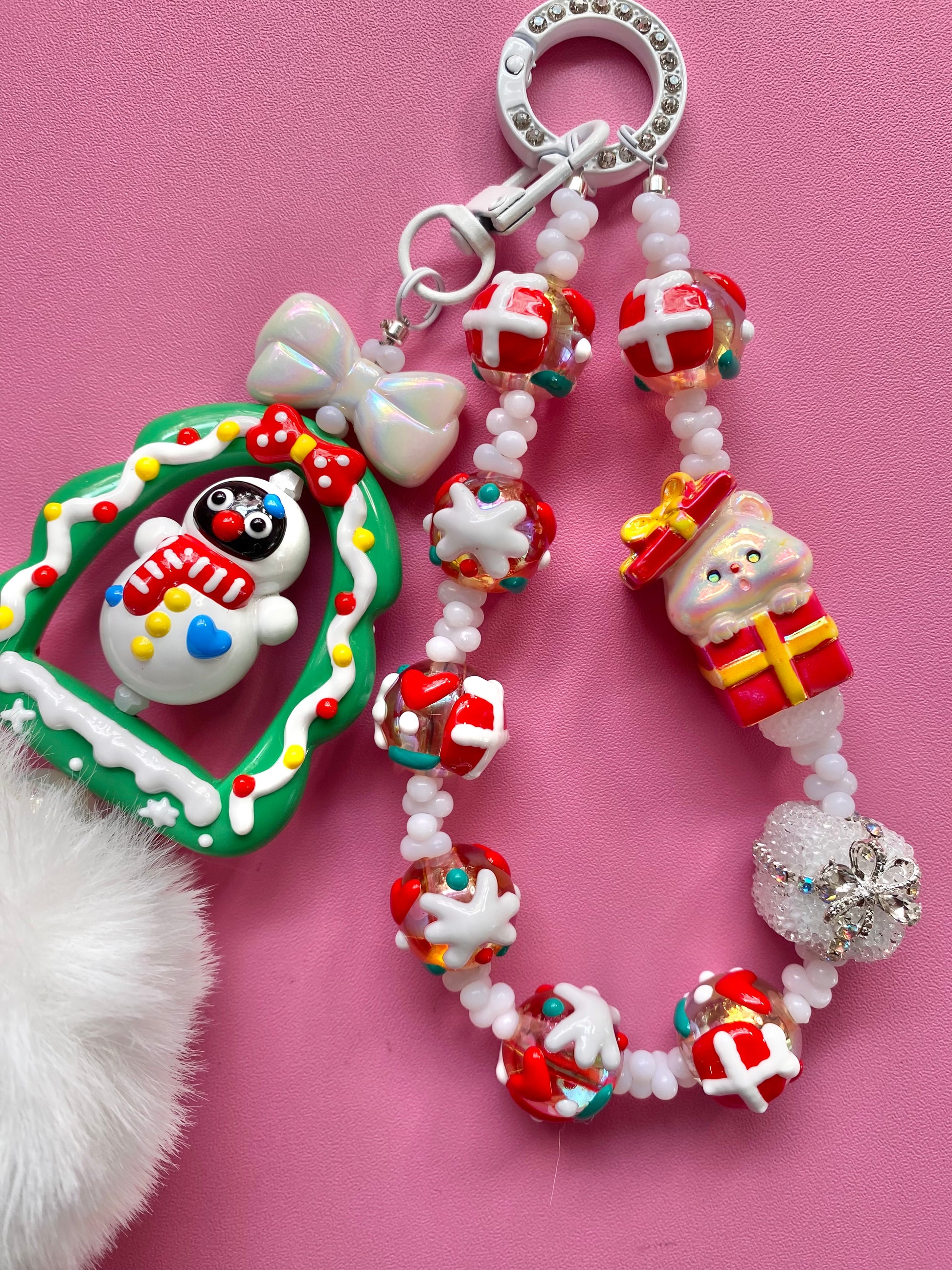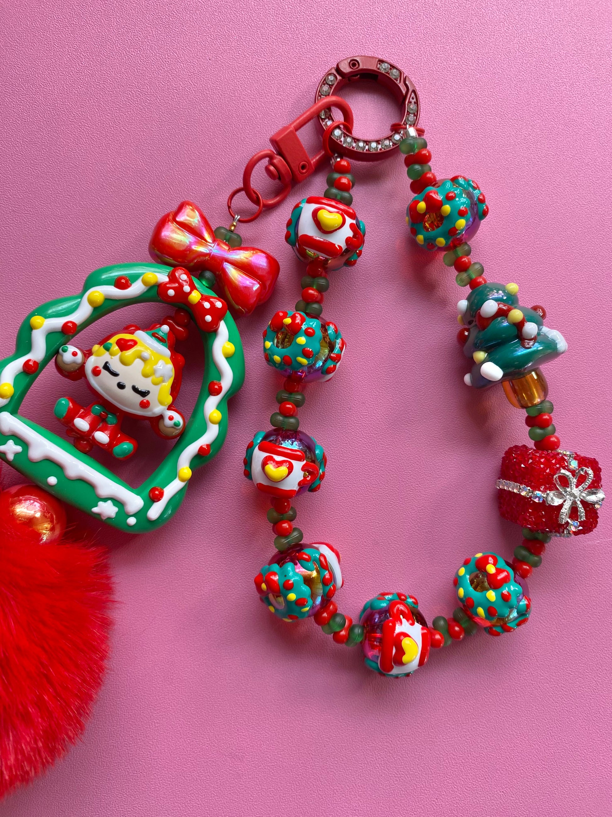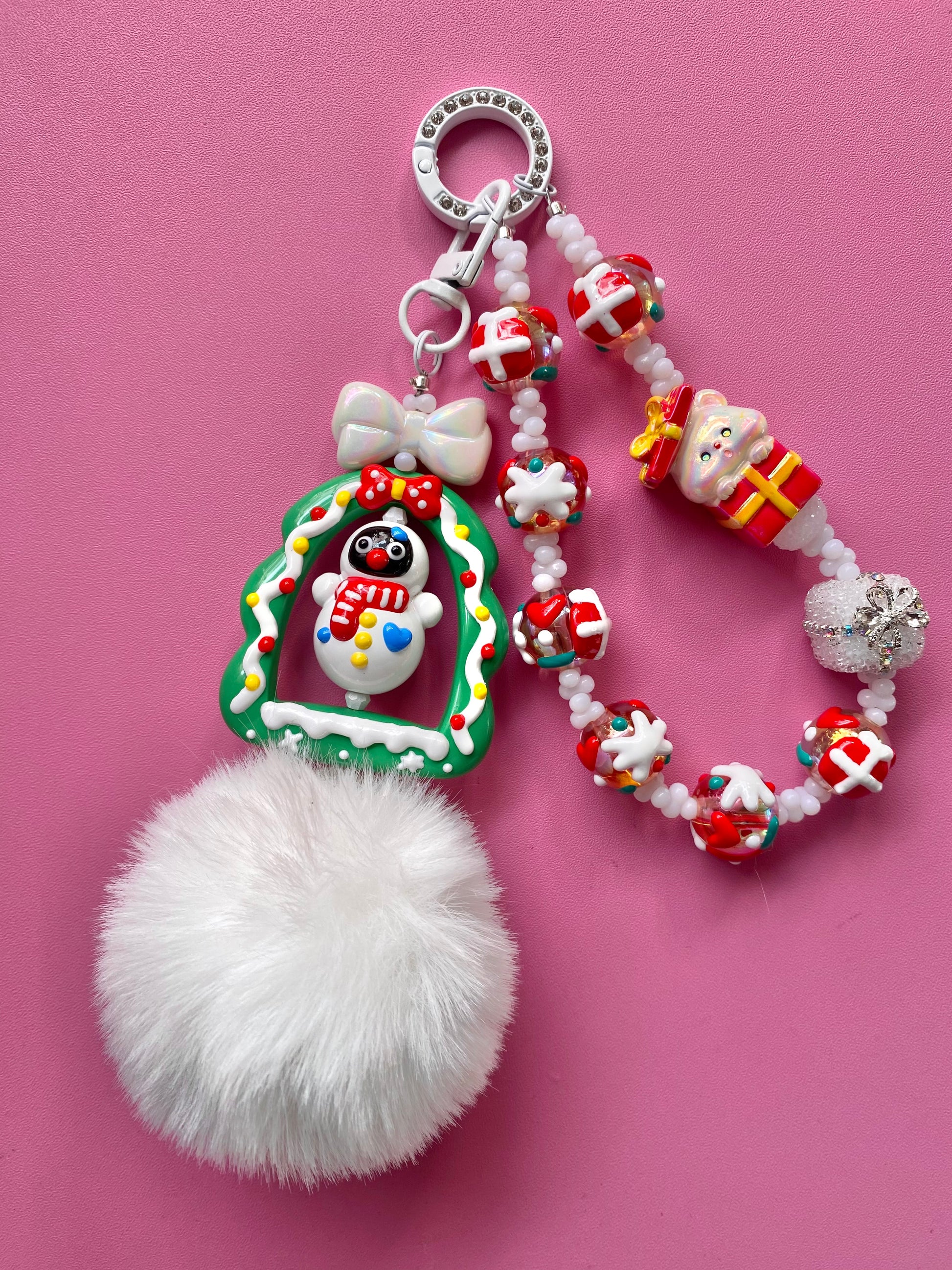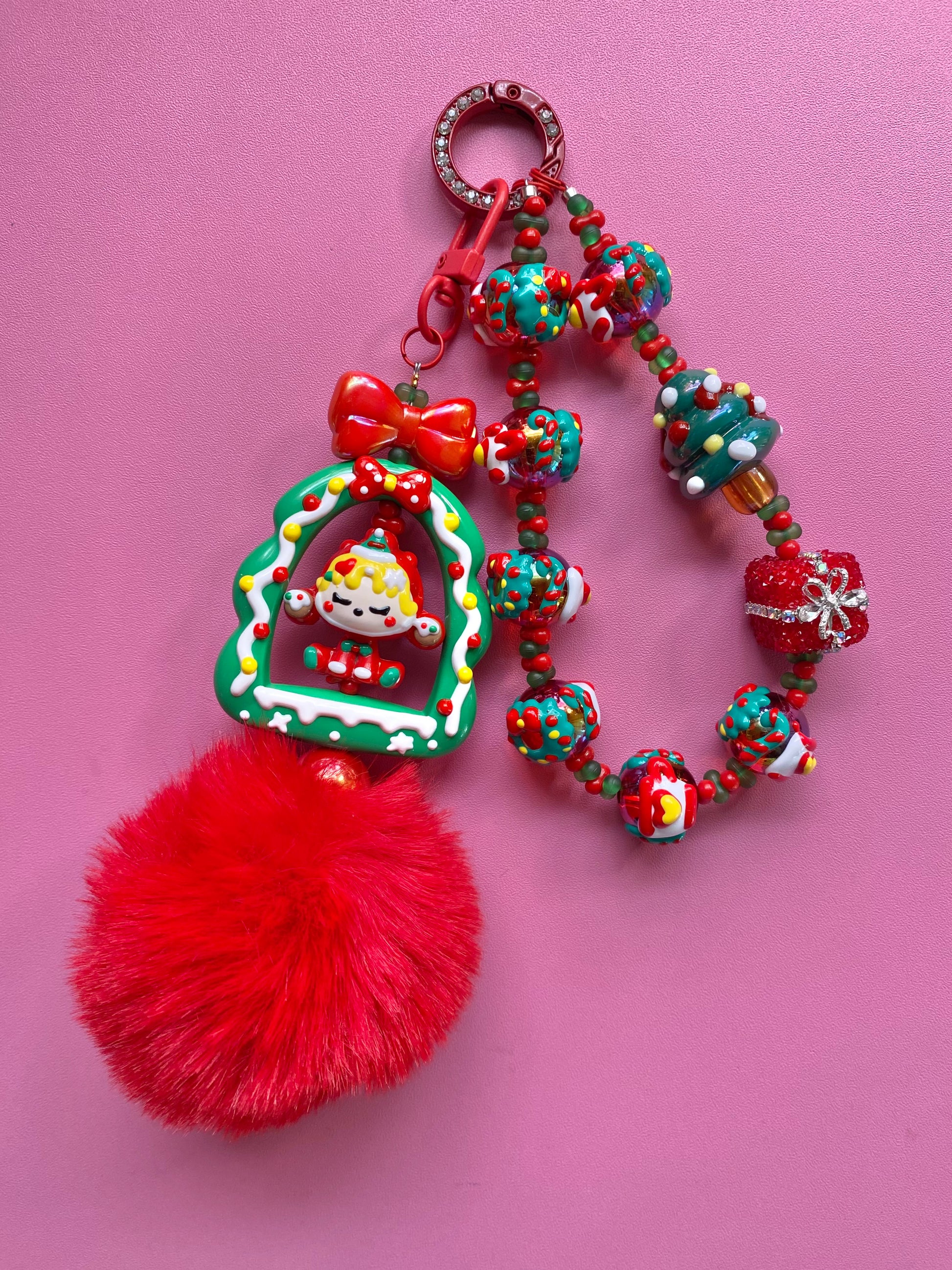 This special Holiday Frame Keychain is a 2 option clip the Frame portion can be clipped on your bag as a separate option and the chain portion can be used on a bag or a phone! So many ways to display this holiday piece