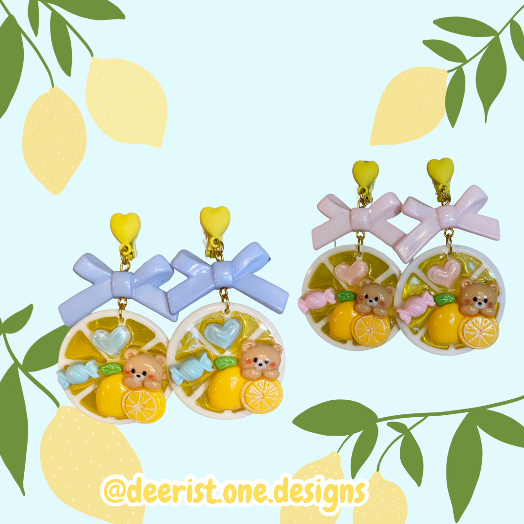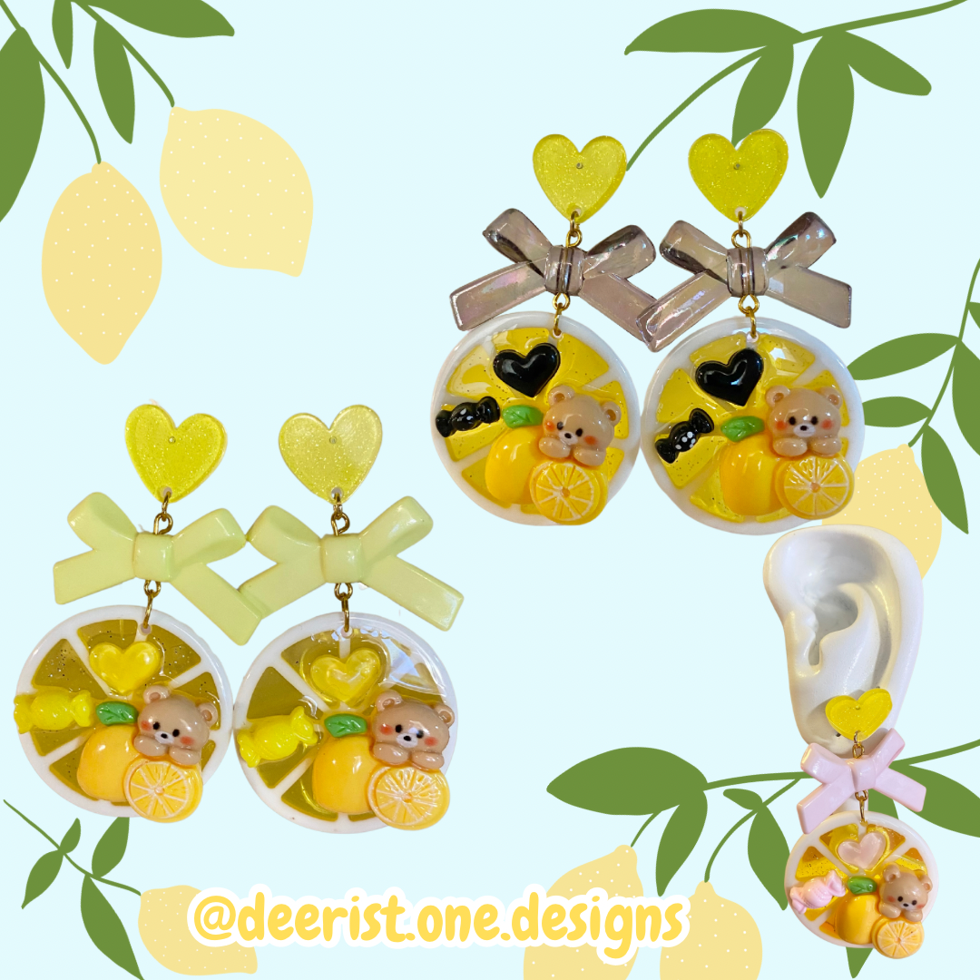 Earrings features a hand arranged center pendant with hearts and candy piece