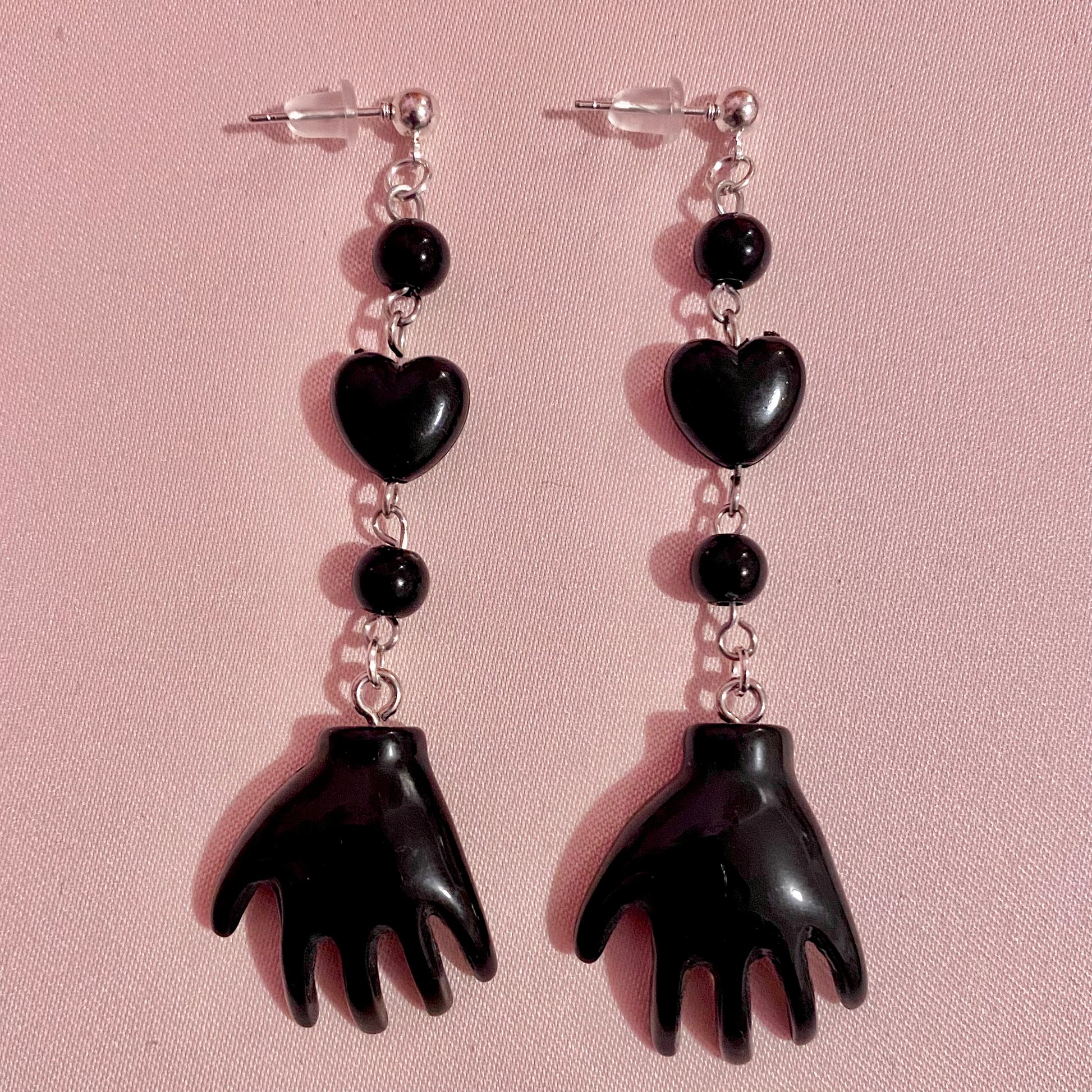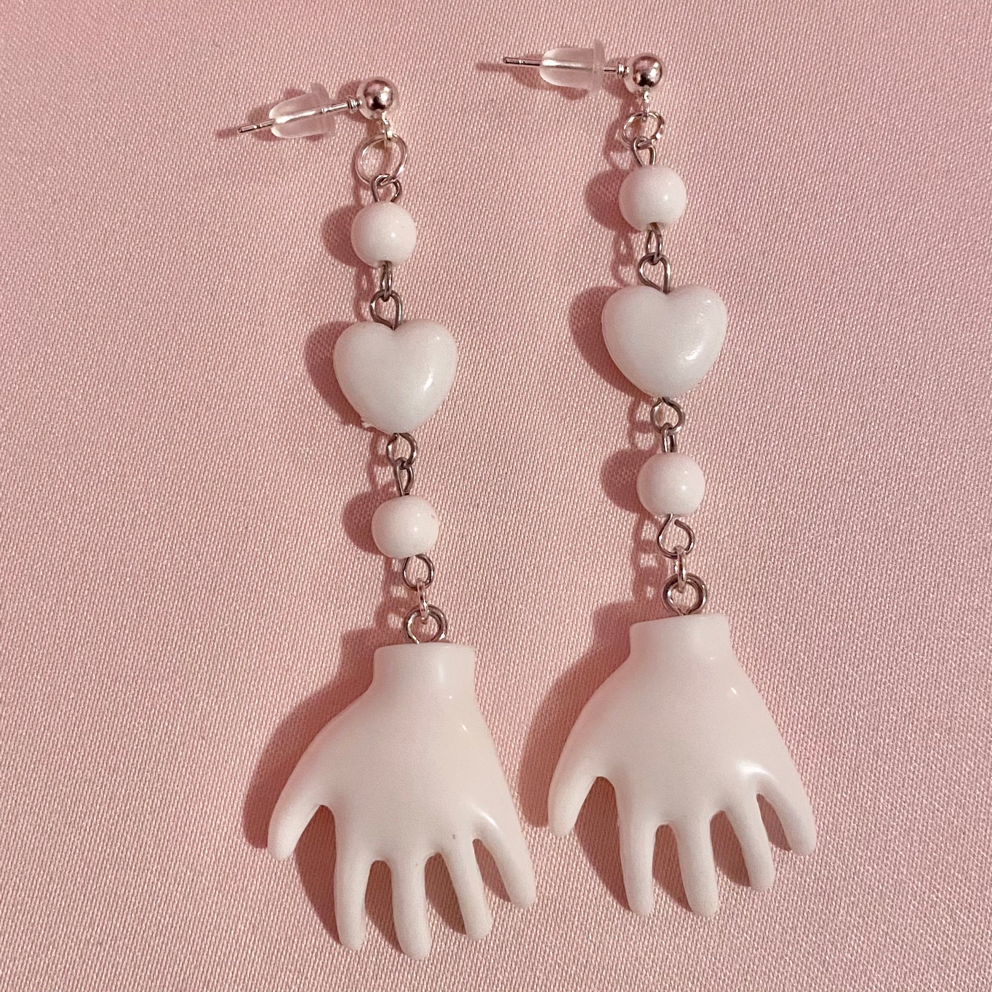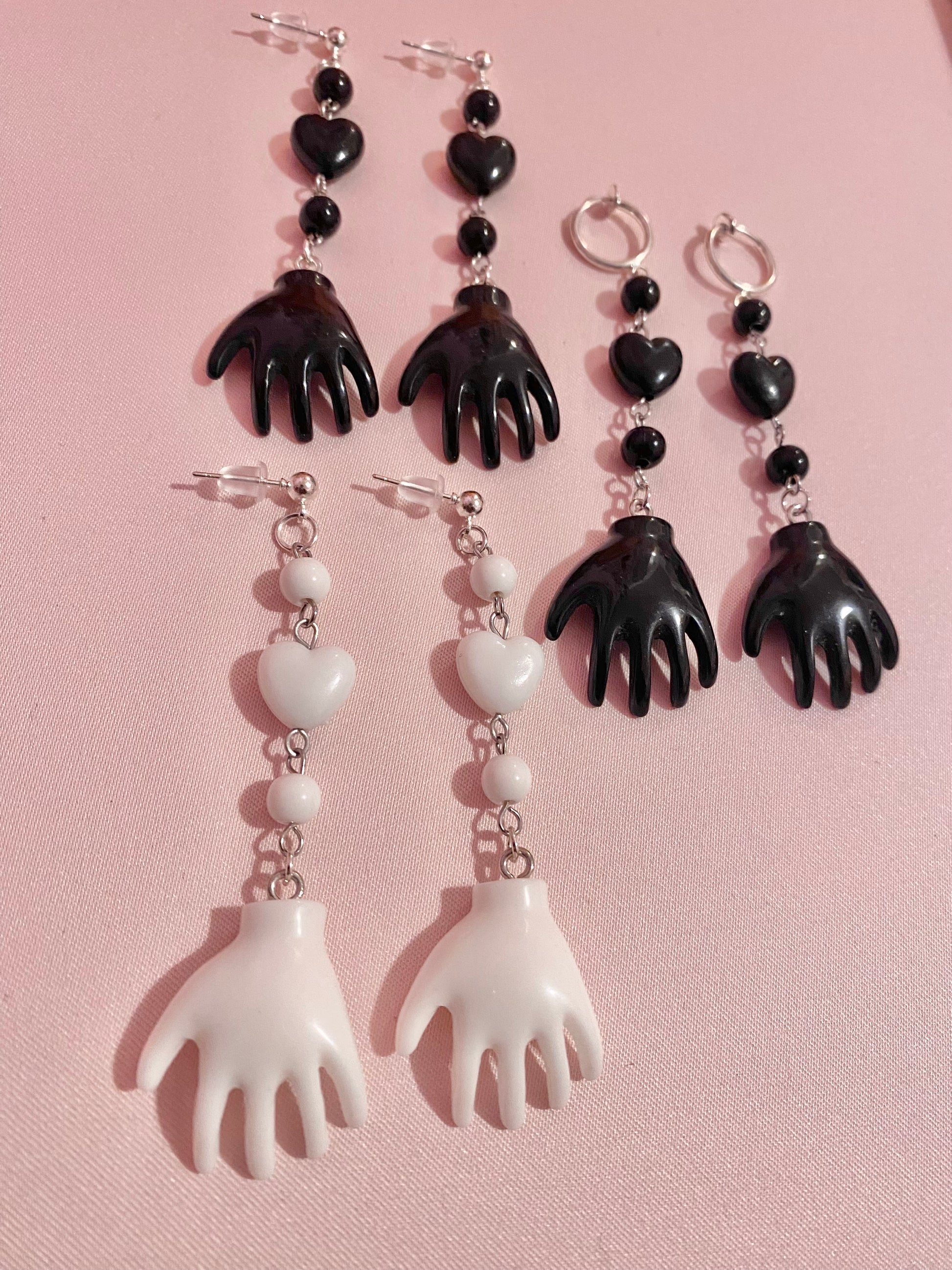 Earrings feature lovely hand charms and cute little heart beads, light weight for easy wear 🤍