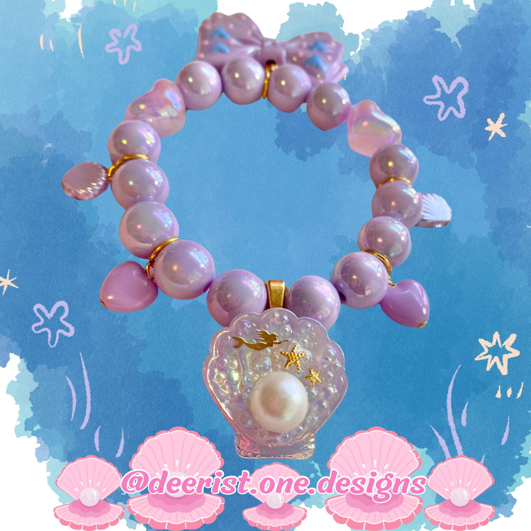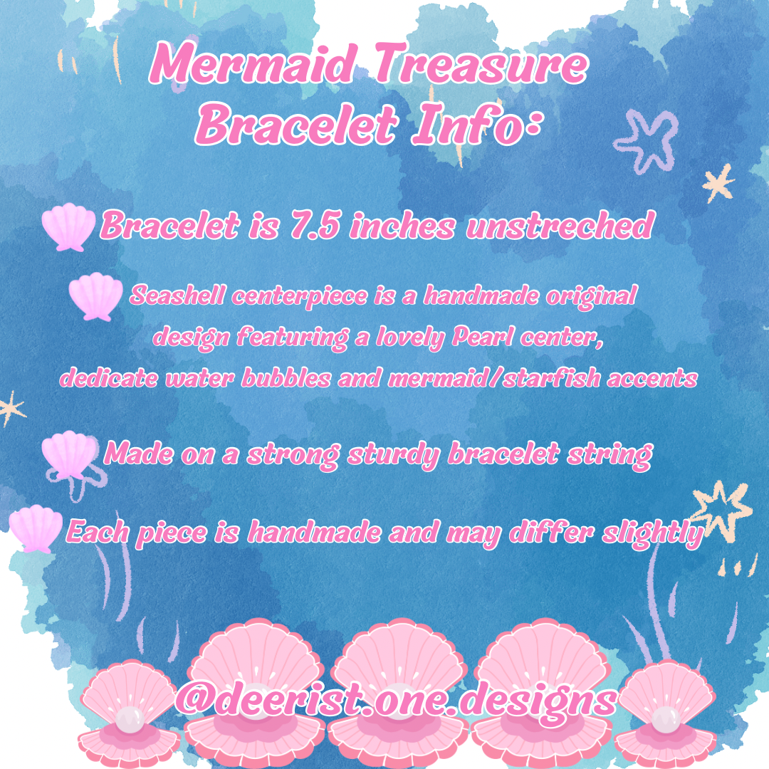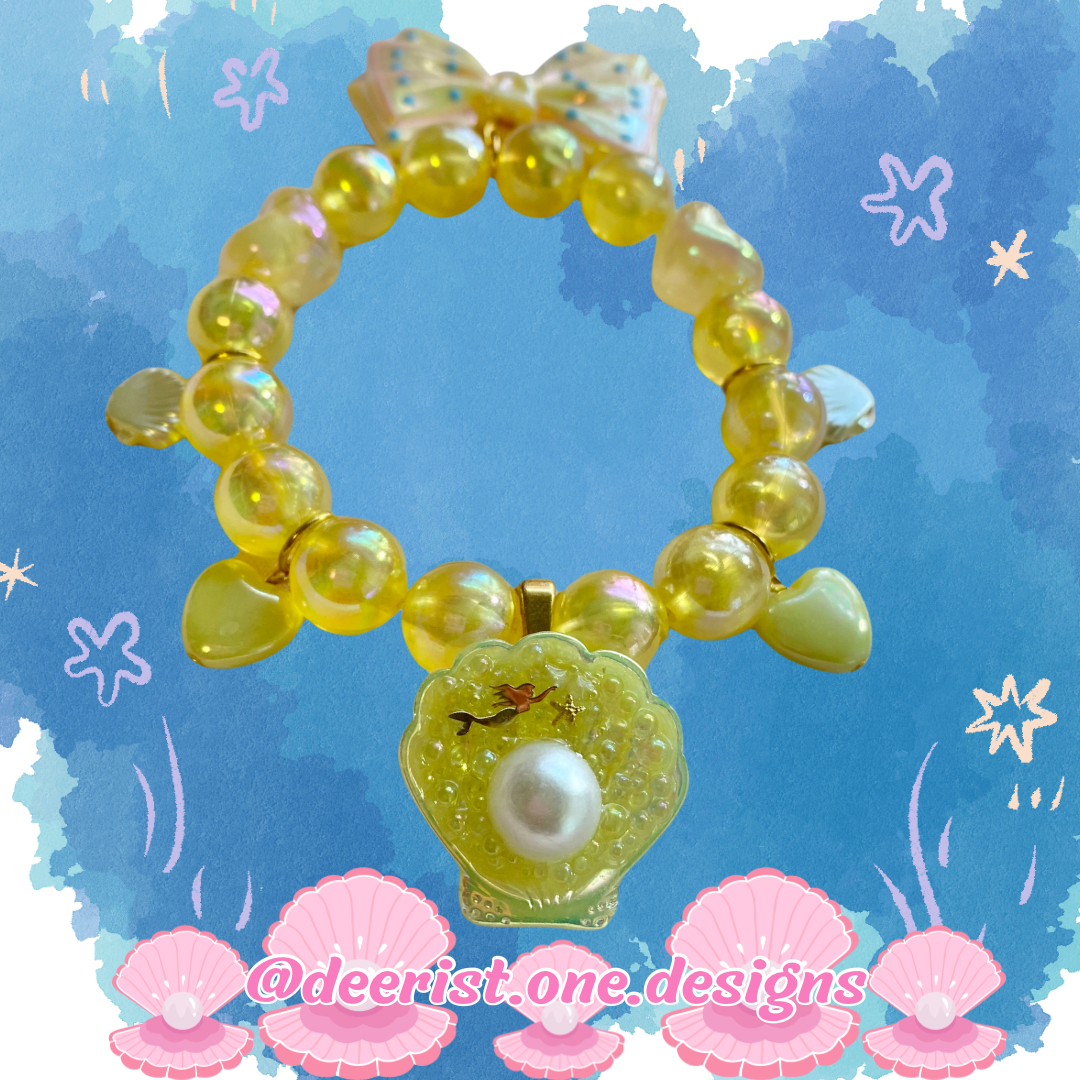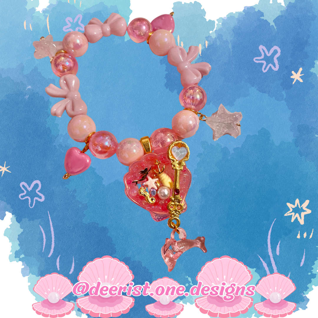Bracelet features a hand decorated Mermaid Shell with your pick of bubbles/Pearl or Bubbles/Sea treasures/spoon/dolphin