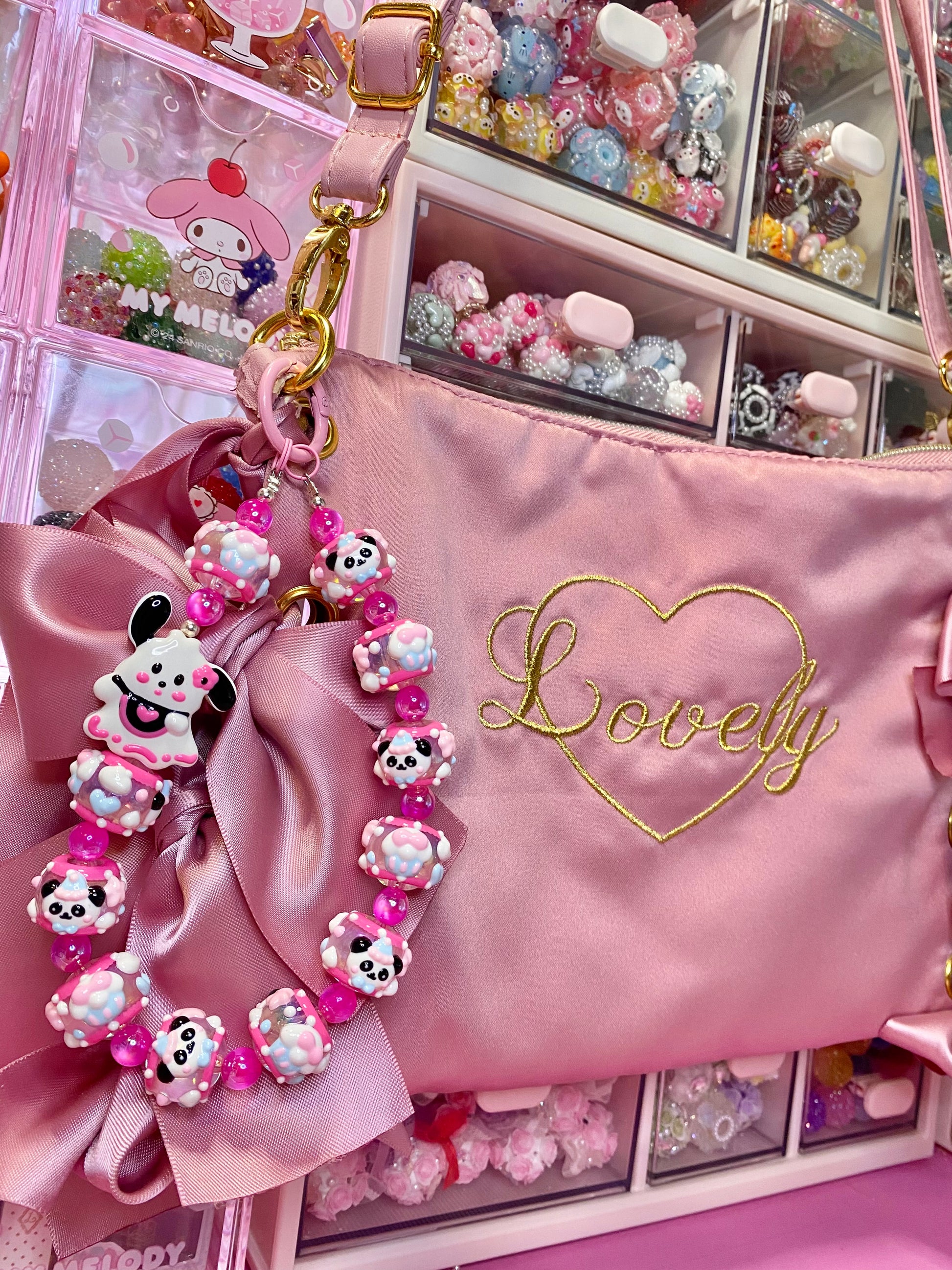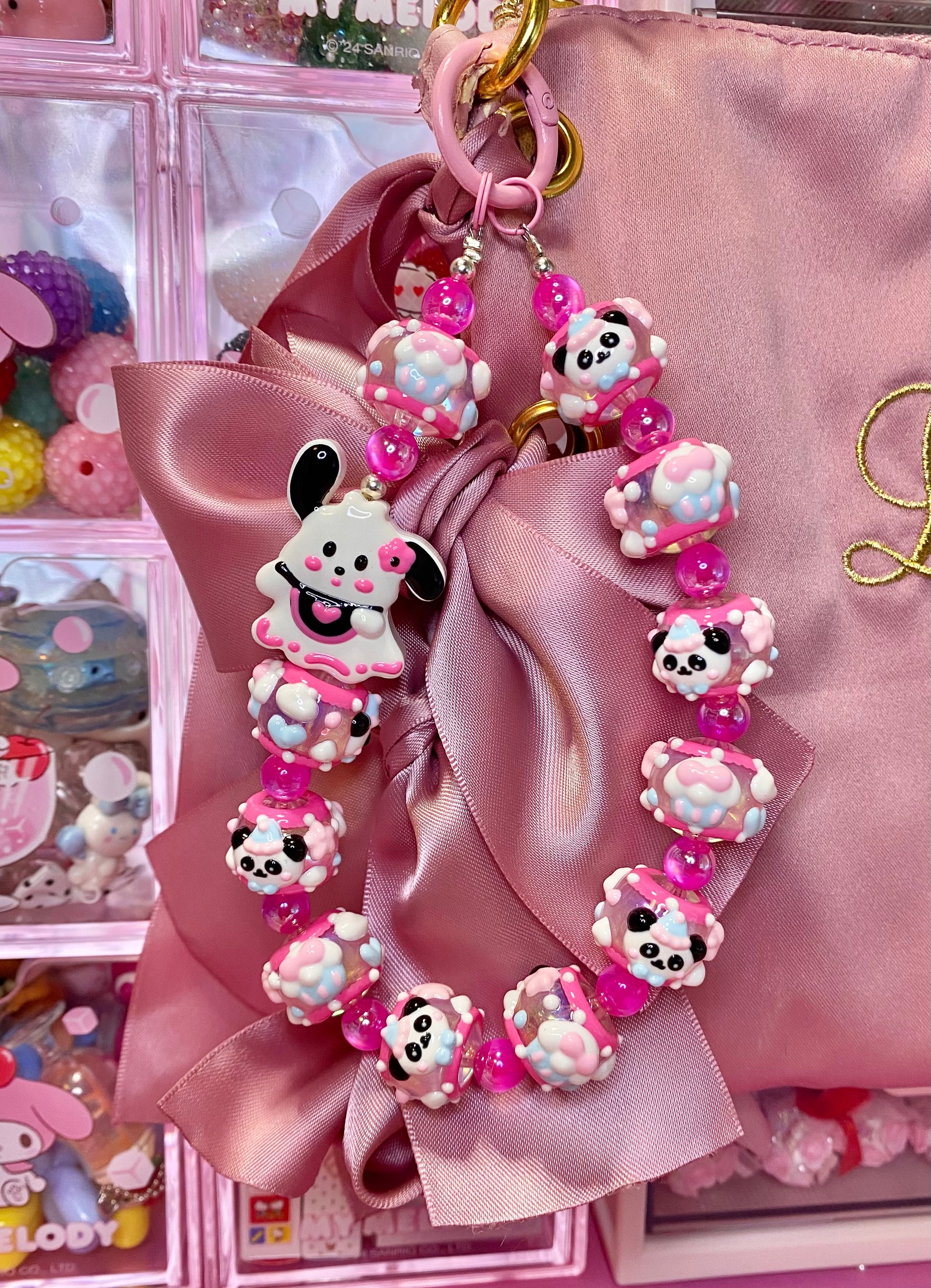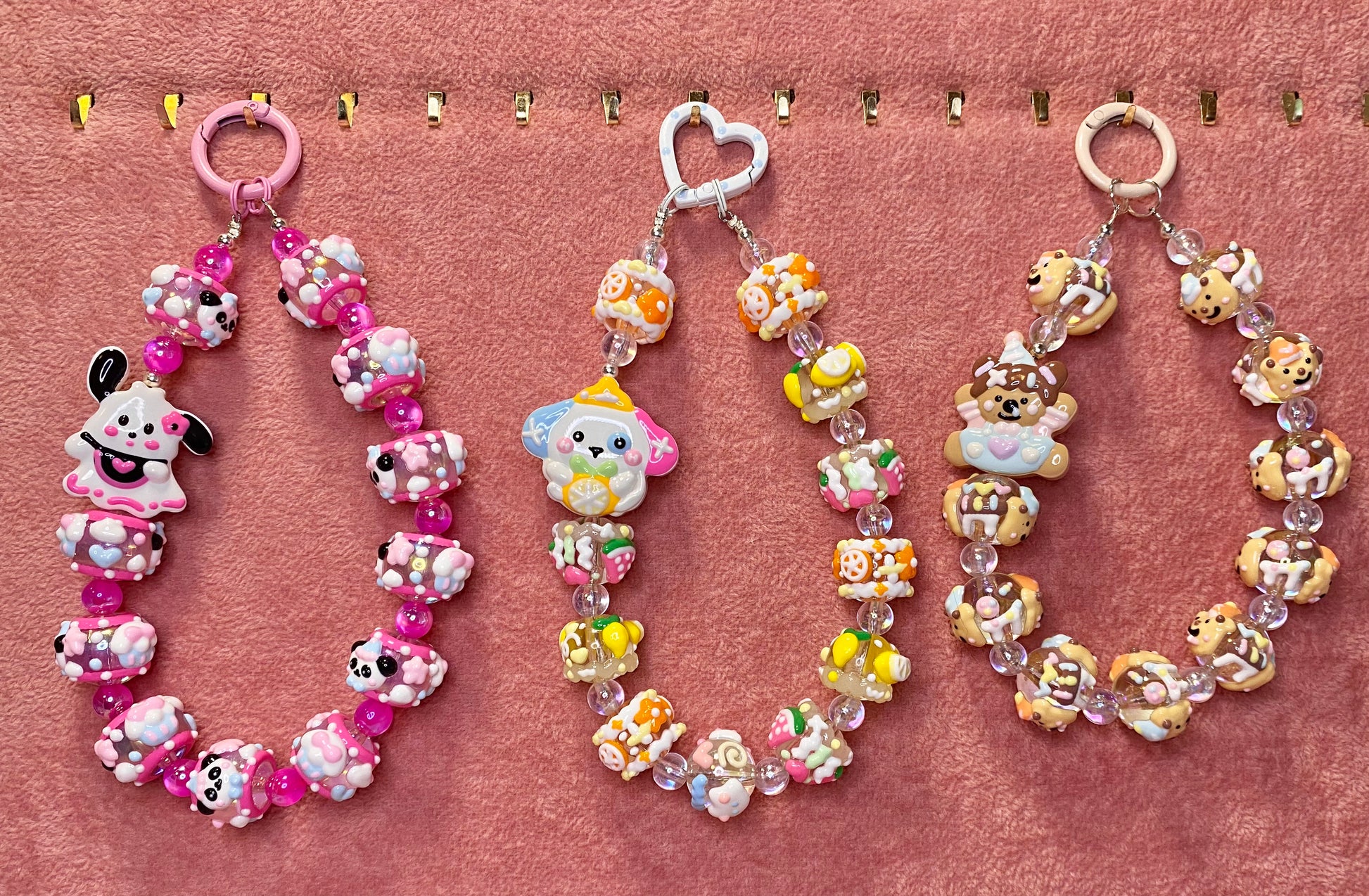 Hand arranged keychain/device strap with various hand painted and luminous beads