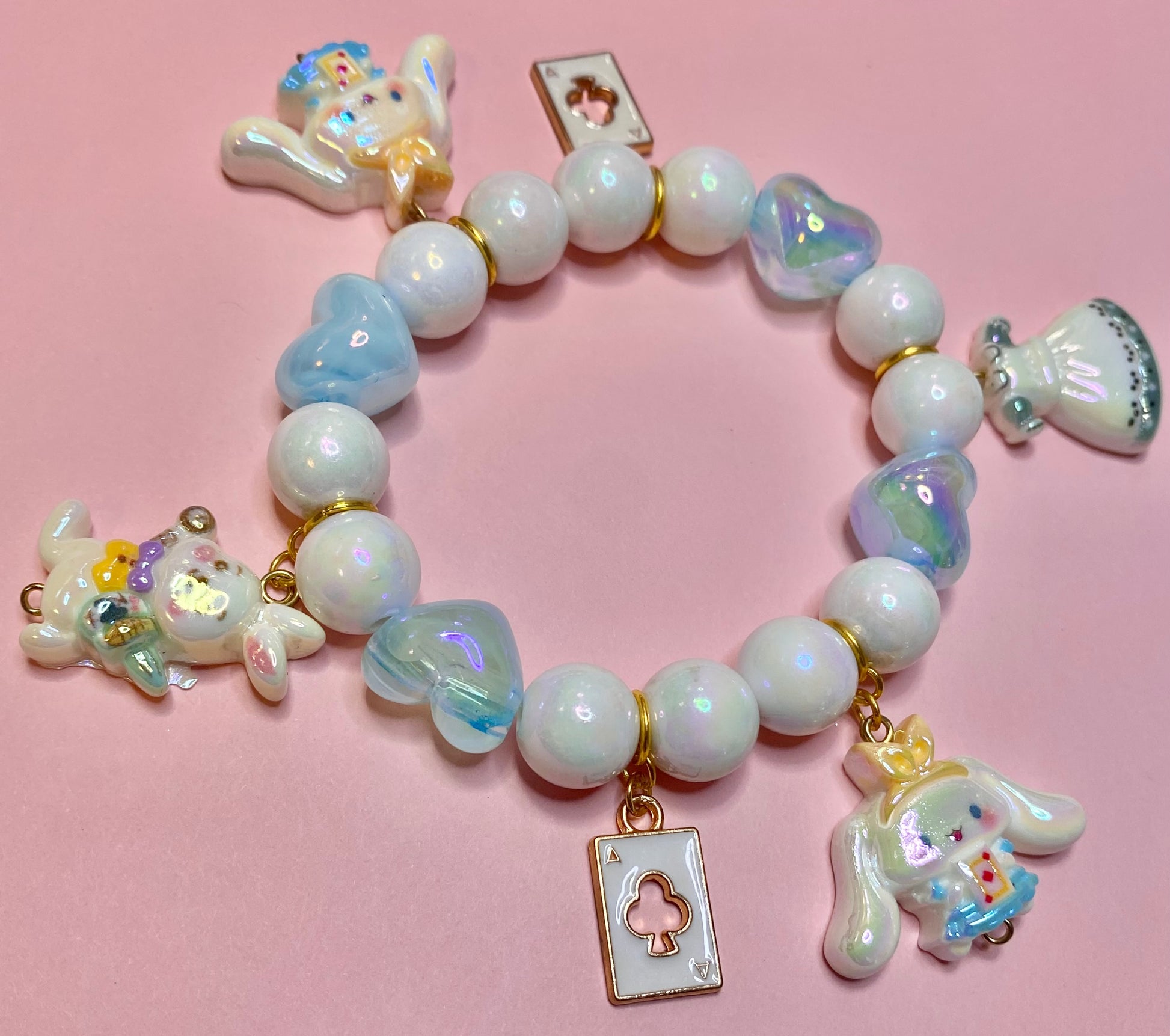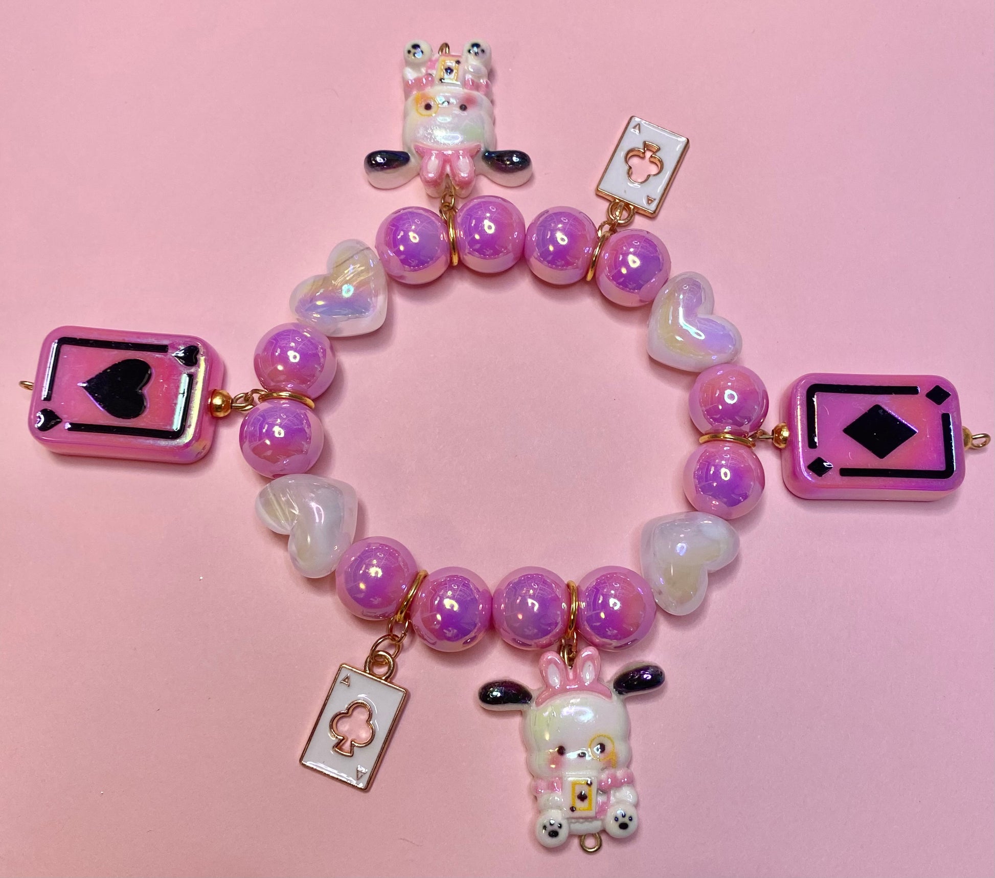 Bracelet features Puppy accent charms/playing cards and bunnies