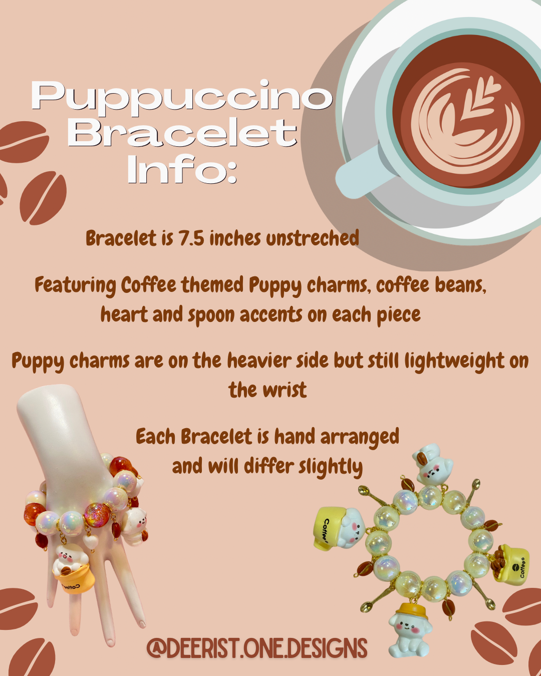 This bracelet is adored with cute puppies doing various coffee things, along with coffee beans, hearts and spoons
