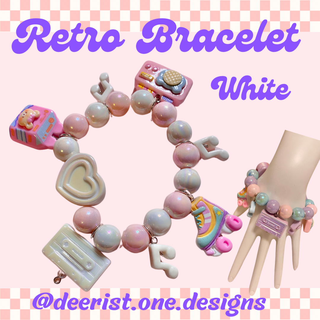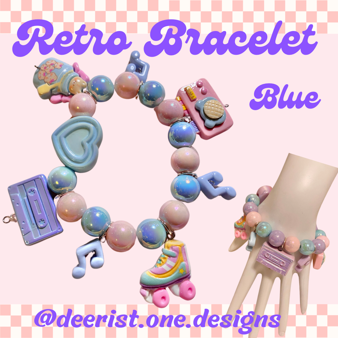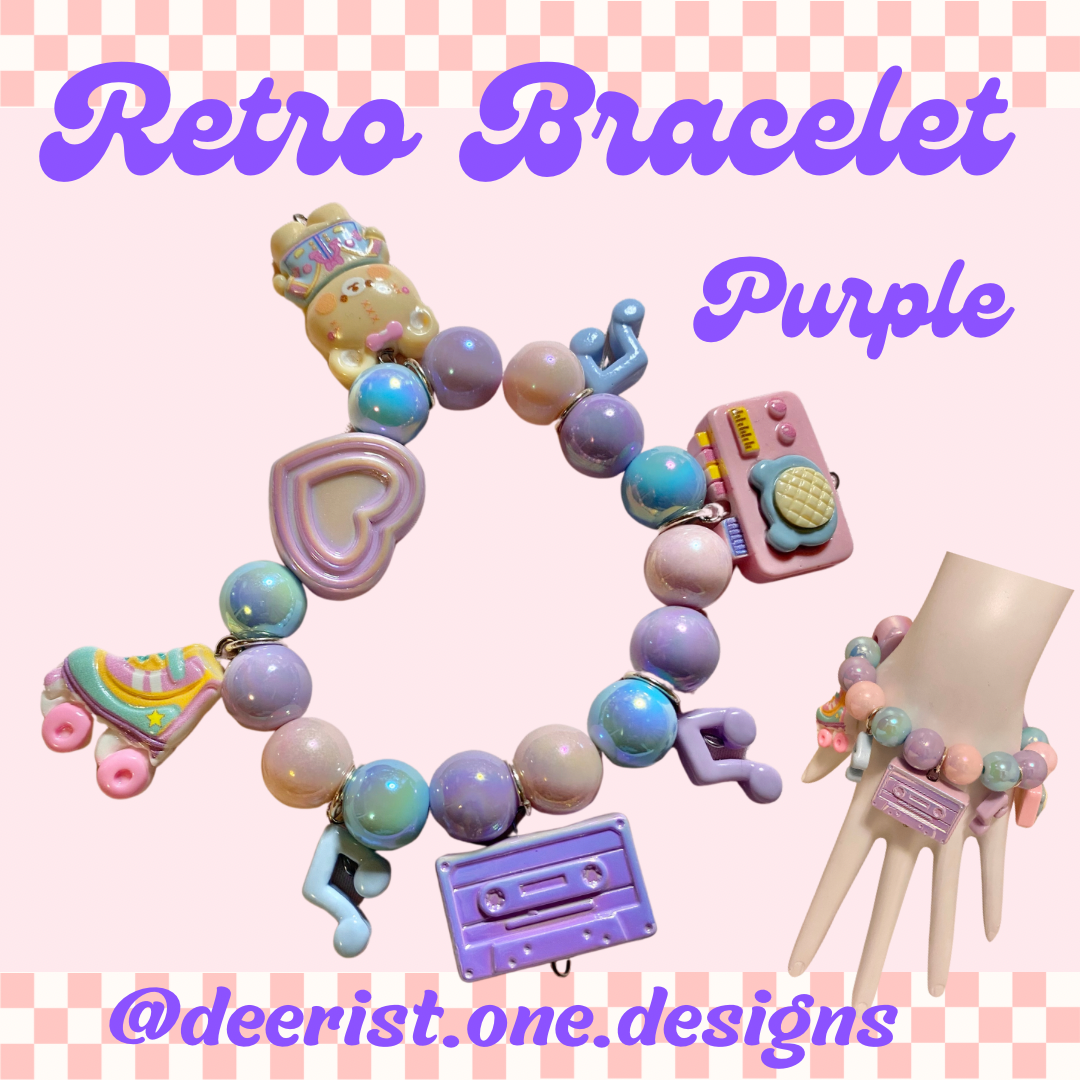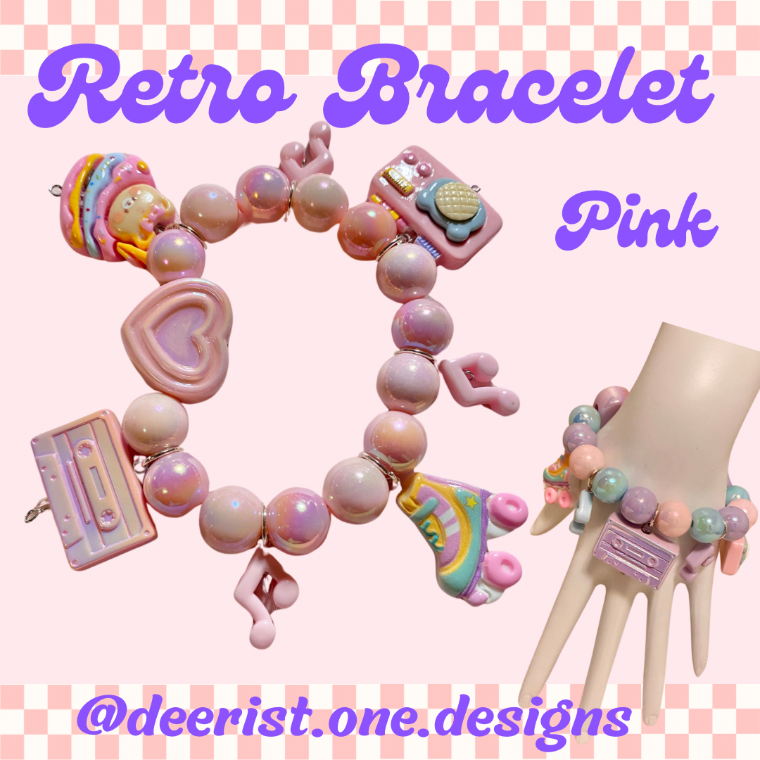 Retro Bracelet features cassette tape accents, roller skate charm, music notes and a bear boom box