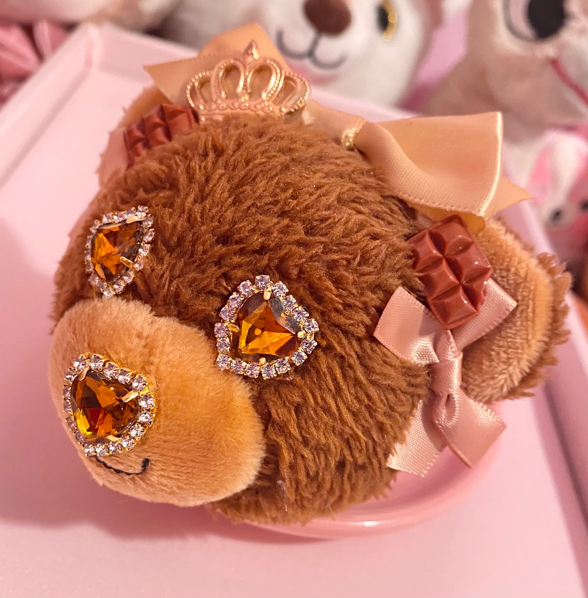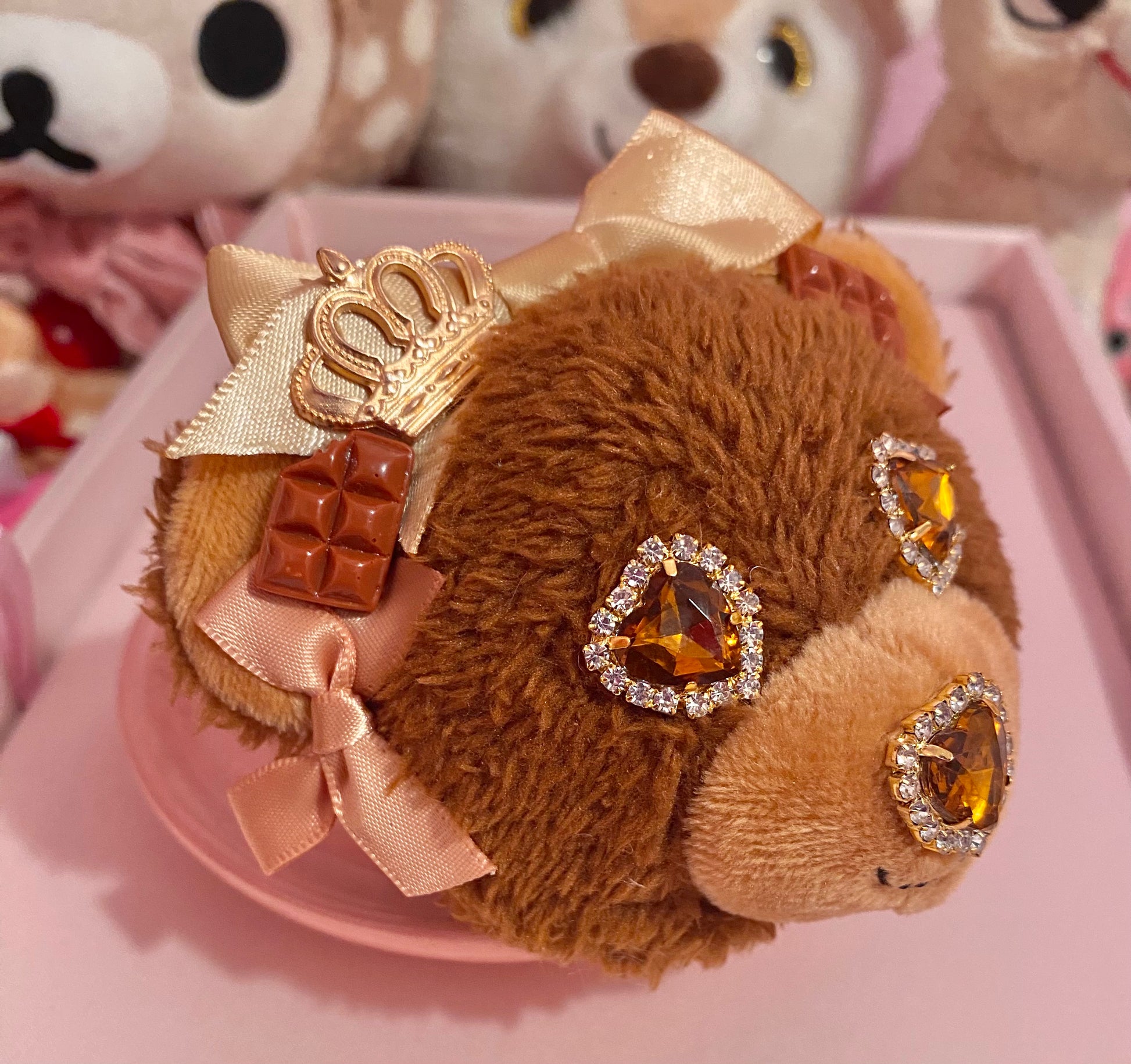 Clip features a variety of bows and cute chocolate/chrome findings and finished with heart rhinestone eyes