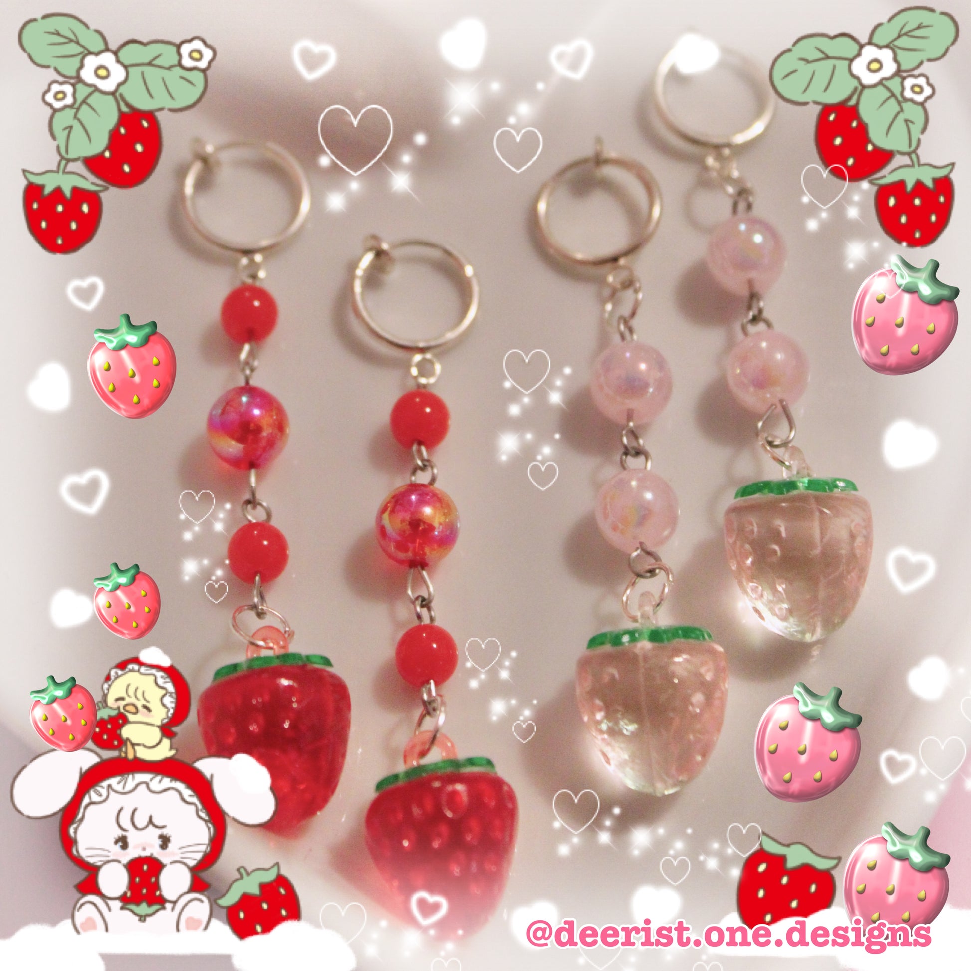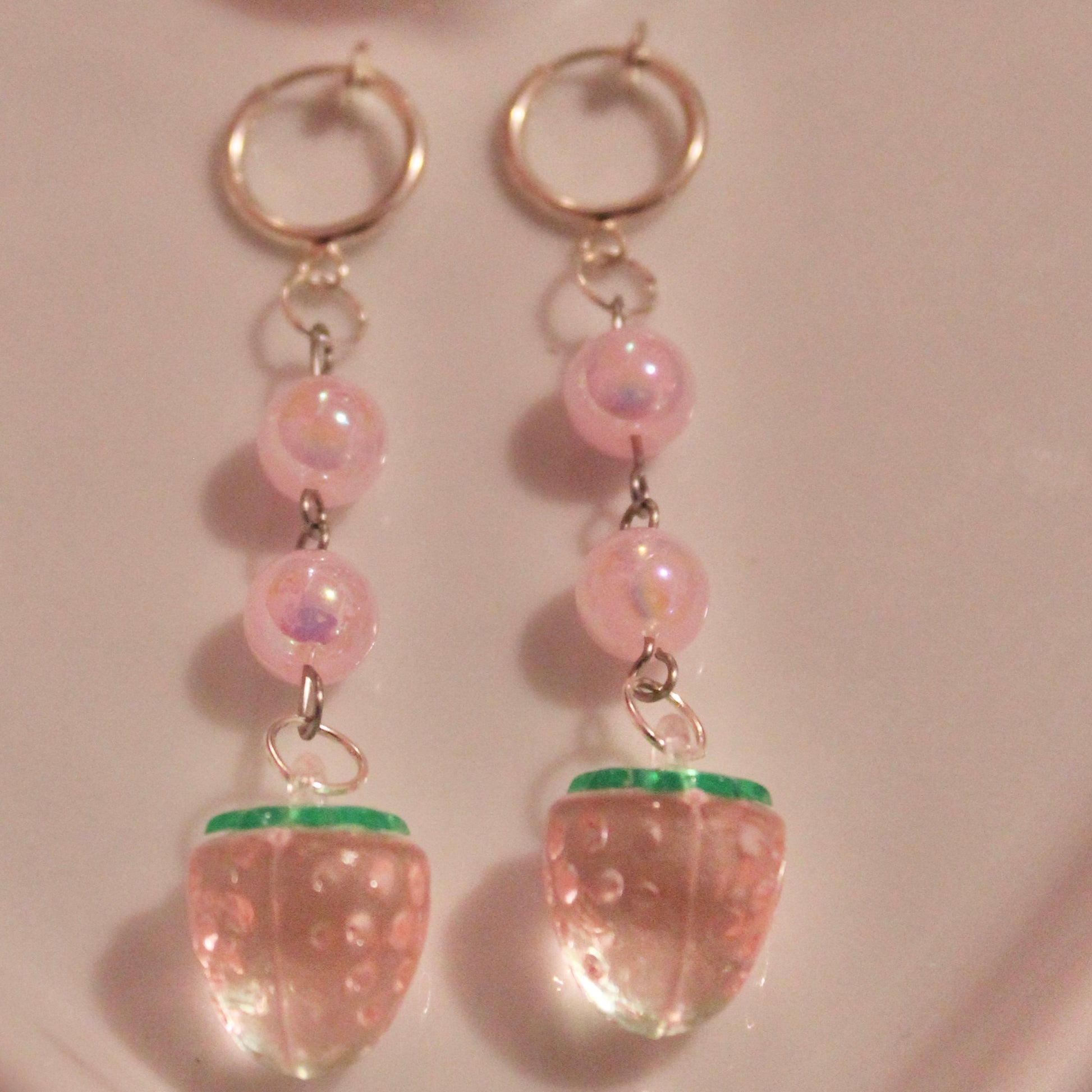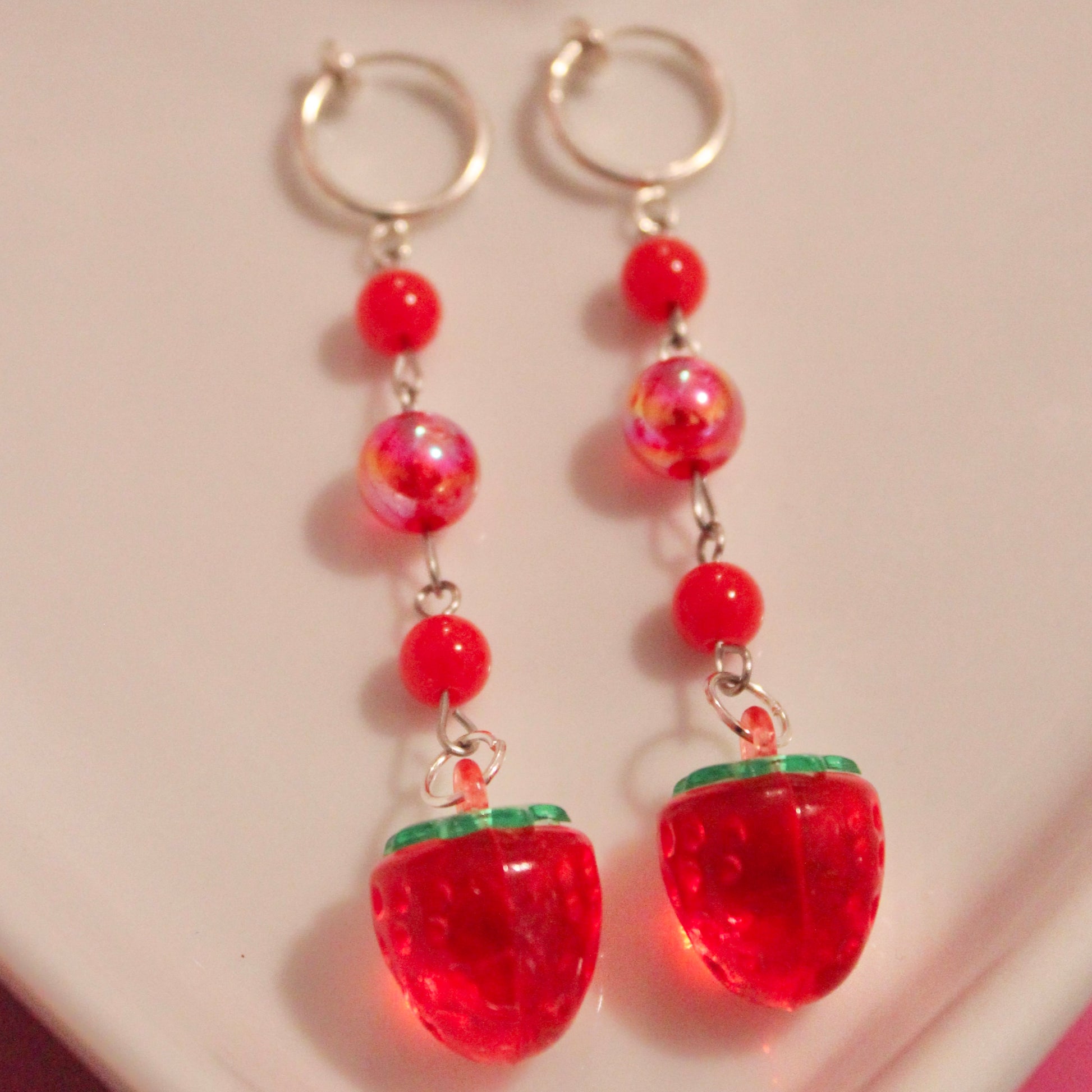 Handmade Strawberry drop style clip on earrings