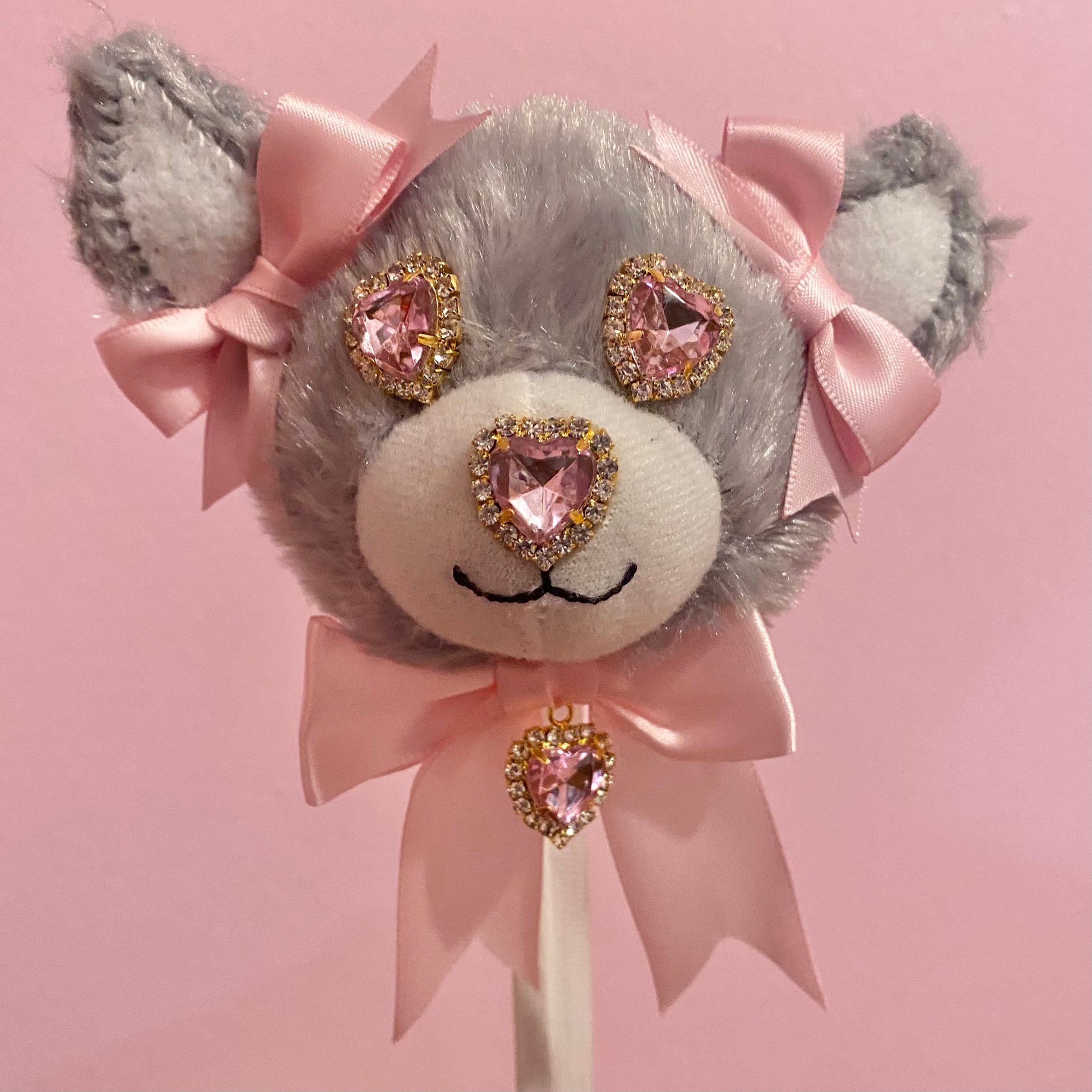 Sweet Wolf 2-way Clip is an original design with beautiful heart rhinestone eyes, handmade ears, pink bows and a cute pink heart charm to finish đź’•