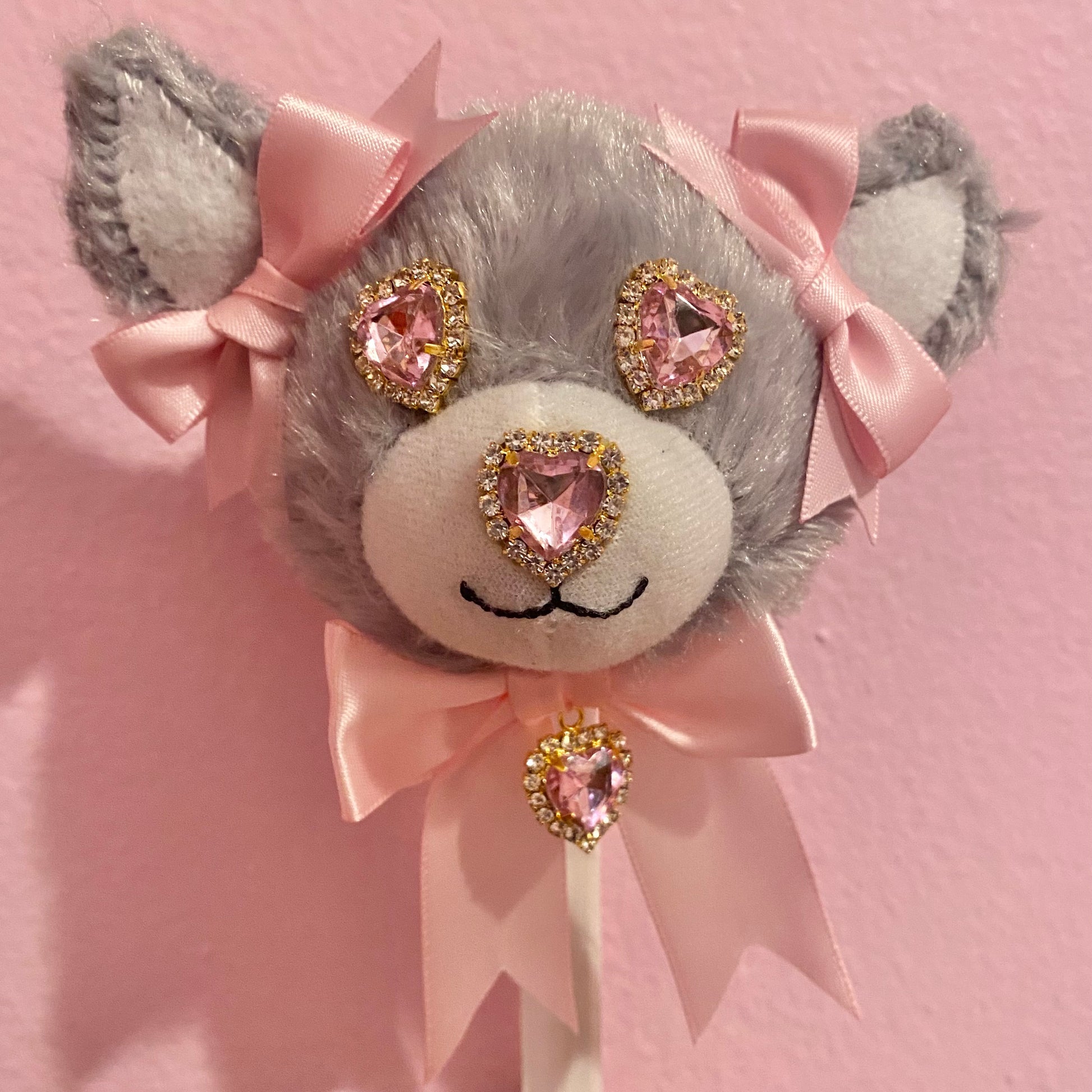 Sweet Wolf 2-way Clip is an original design with beautiful heart rhinestone eyes, handmade ears, pink bows and a cute pink heart charm to finish 💕