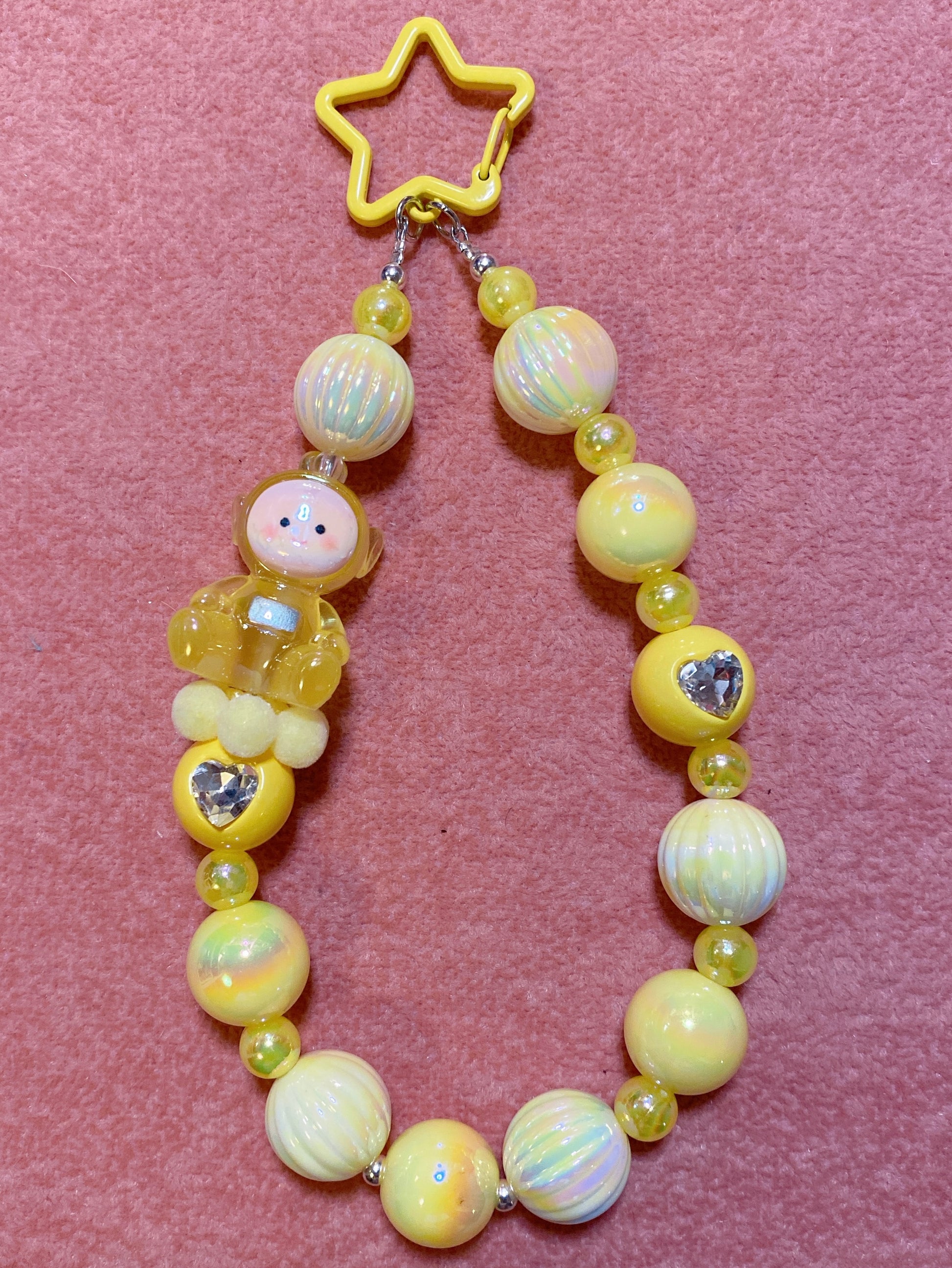 This keychain features a cute Tv Friend sitting on flocked bead on a hand arranged keychain attachment