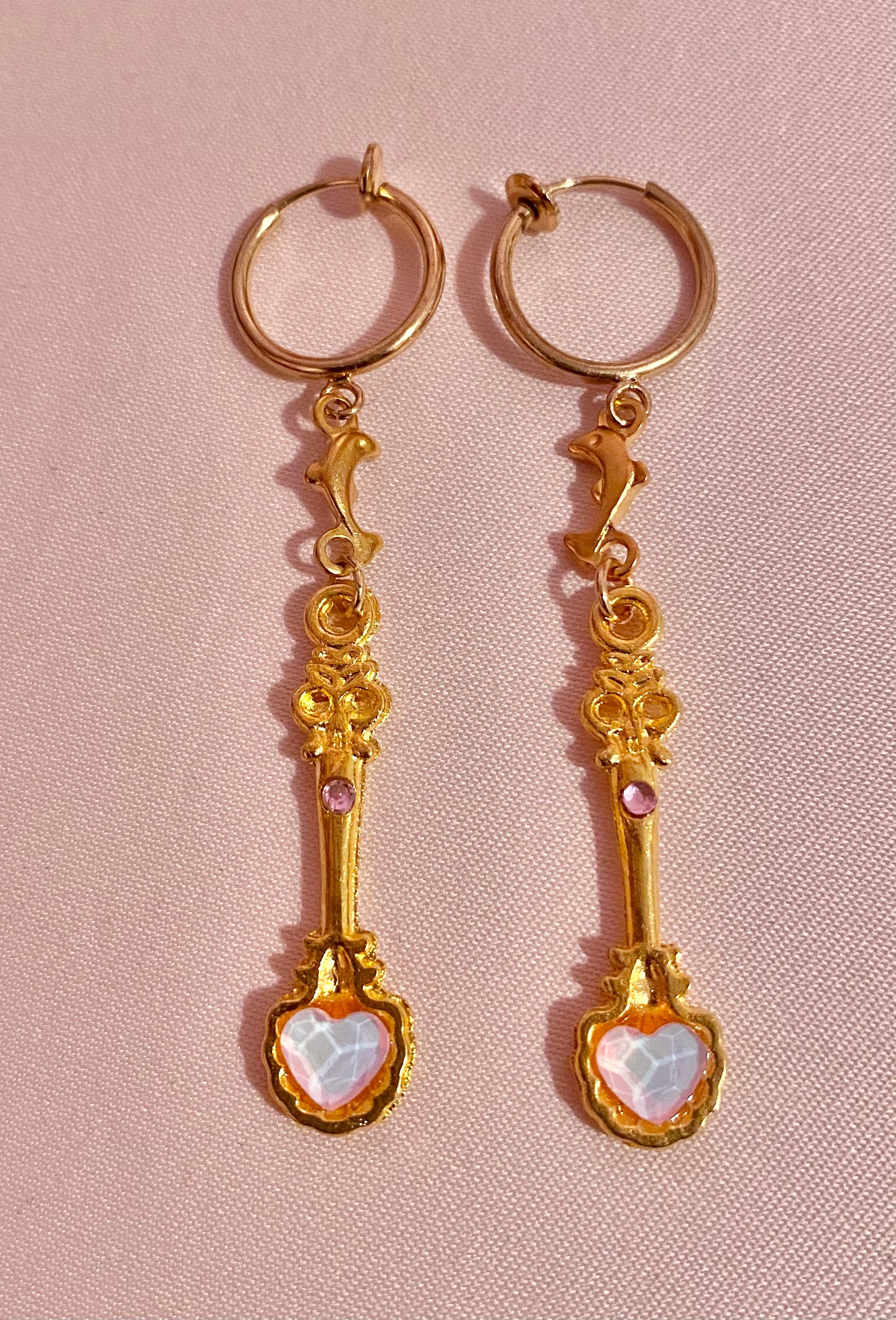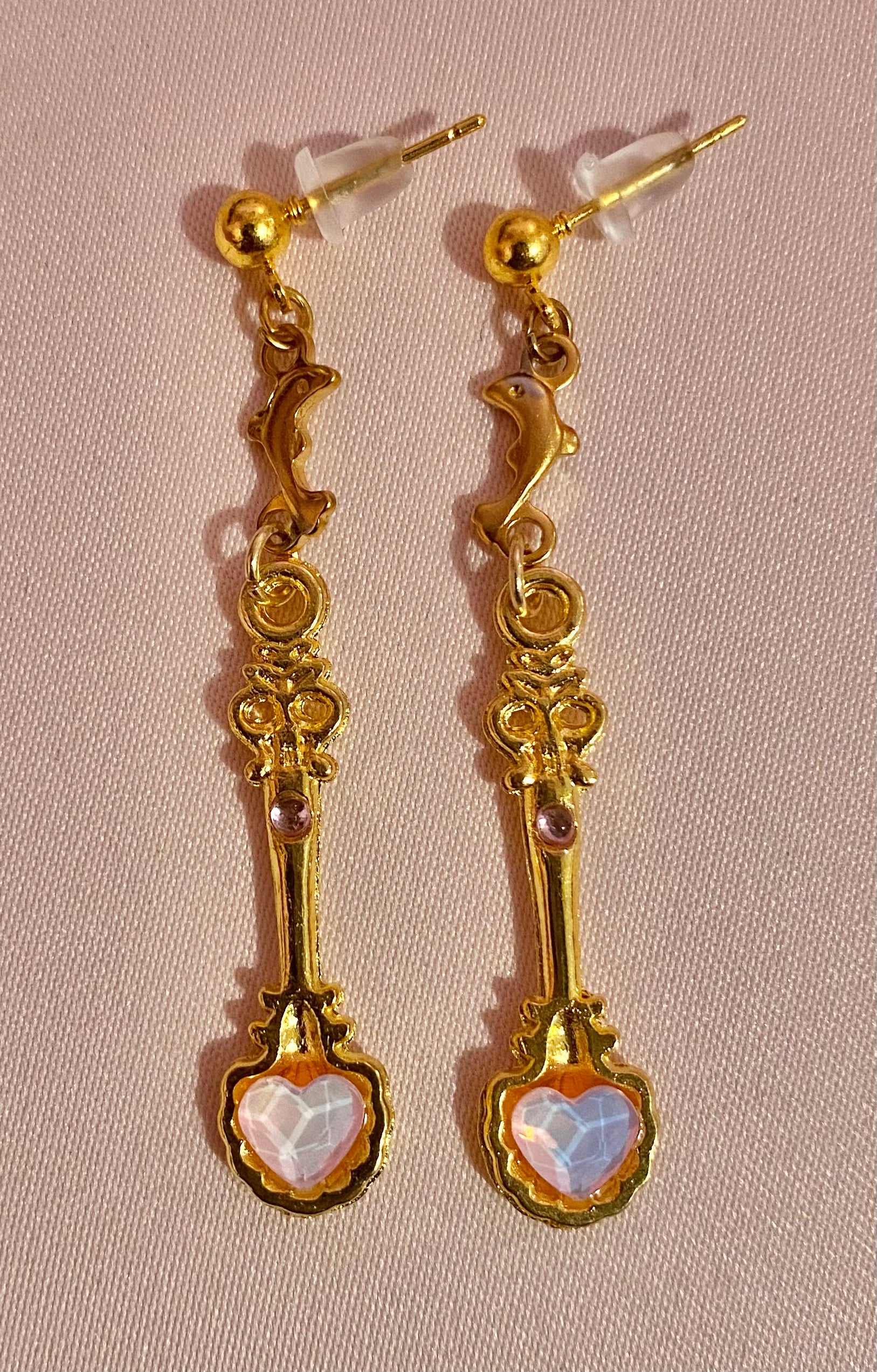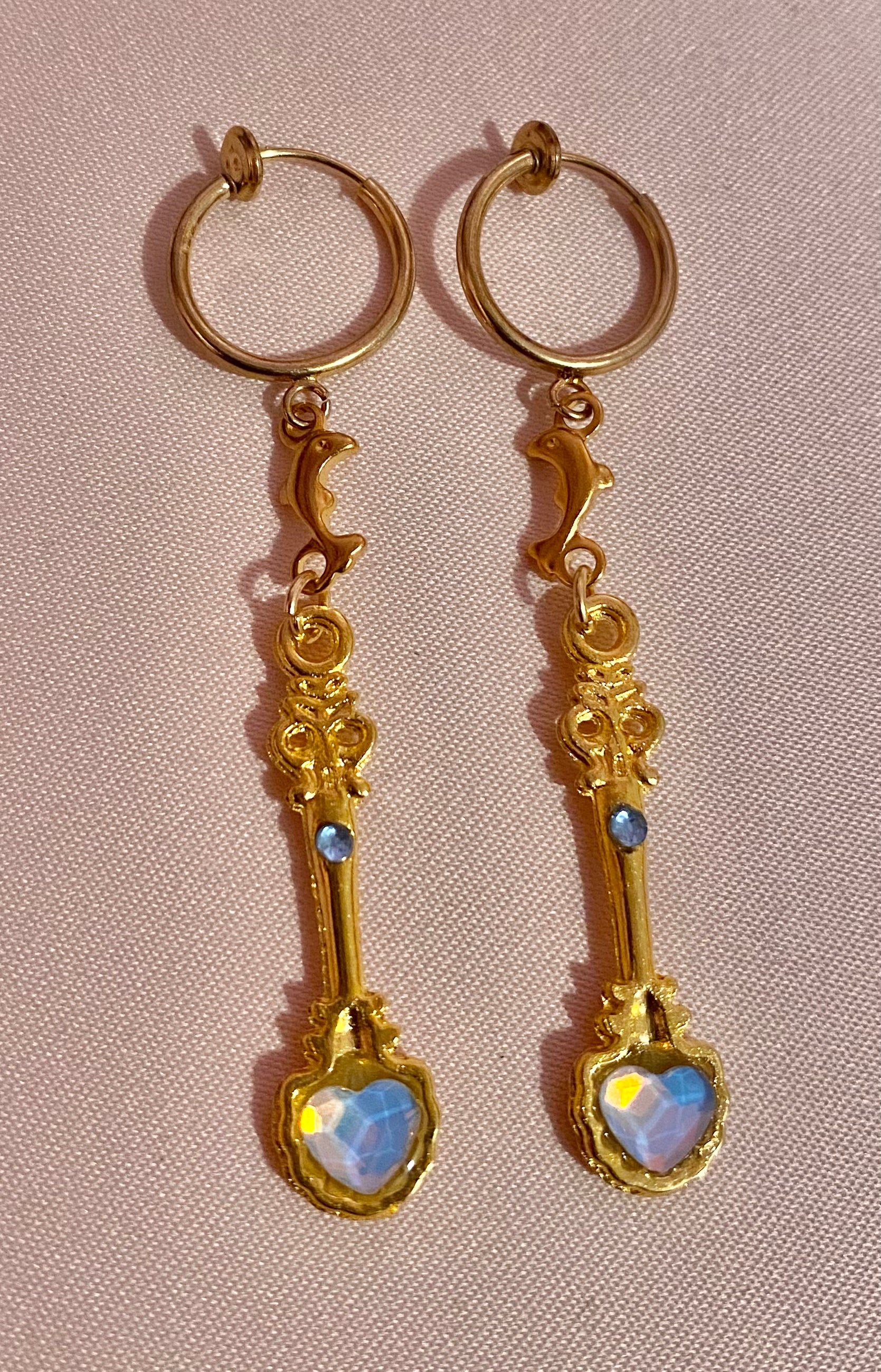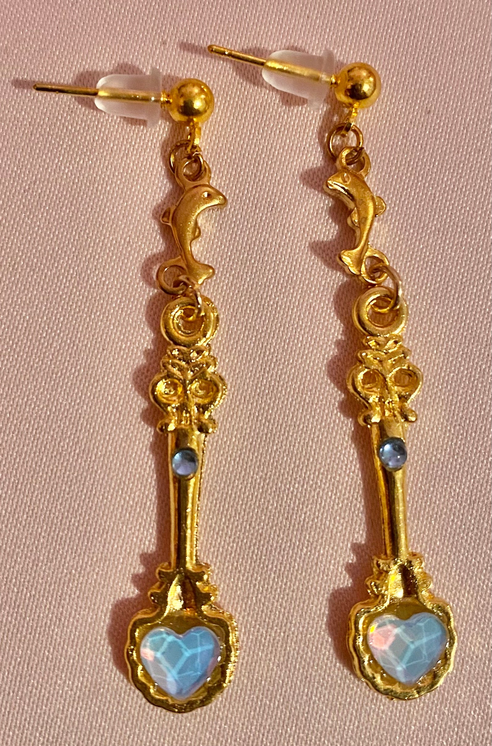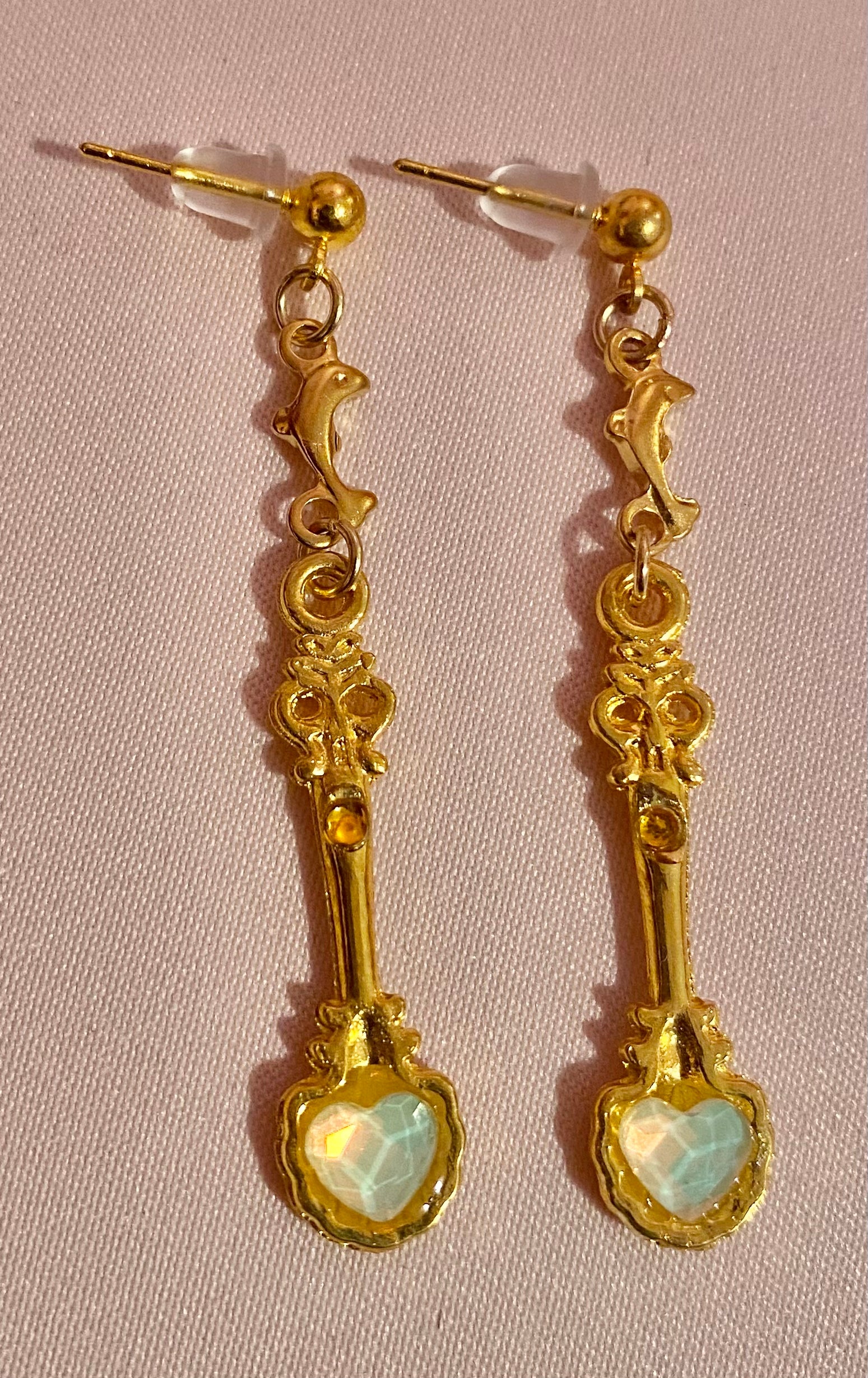 Delicate seashell spoon charms with a tiny water heart in the center and a small golden dolphin š¬Ā
