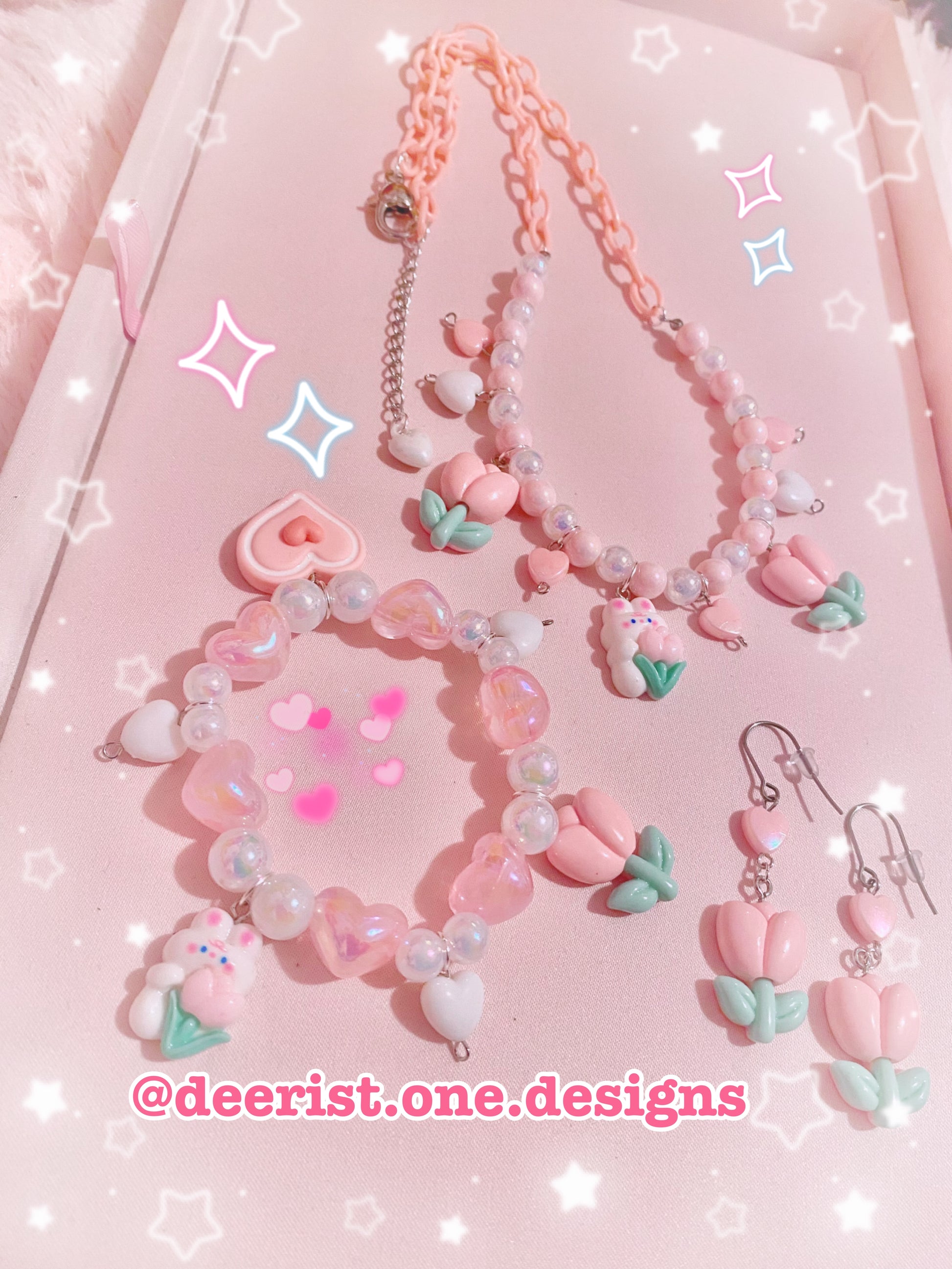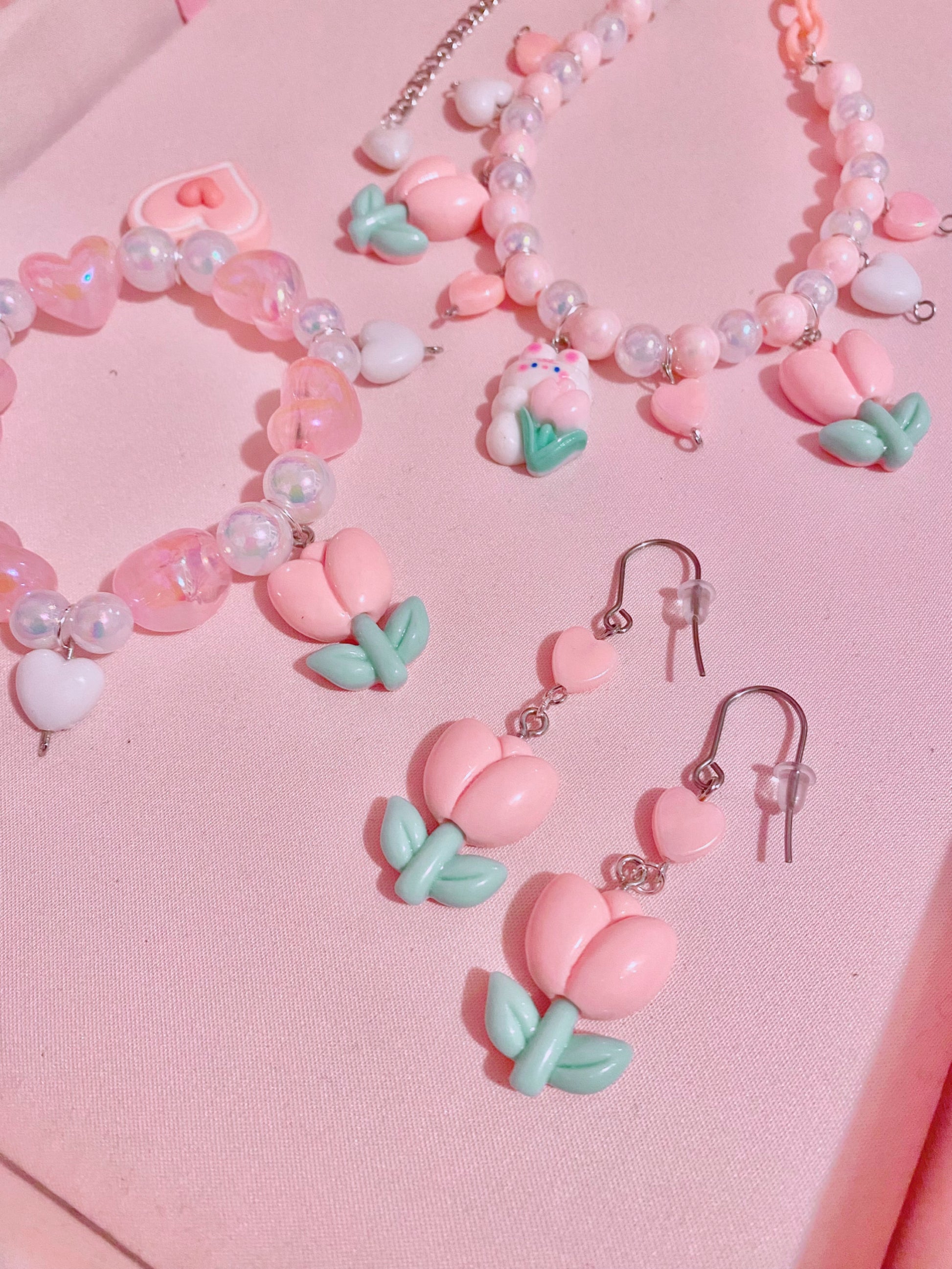 Set features a hand arranged Accessories with various Tulip Bunny Charms, Tulip Charms, Heart Charms and Heart Bead accents