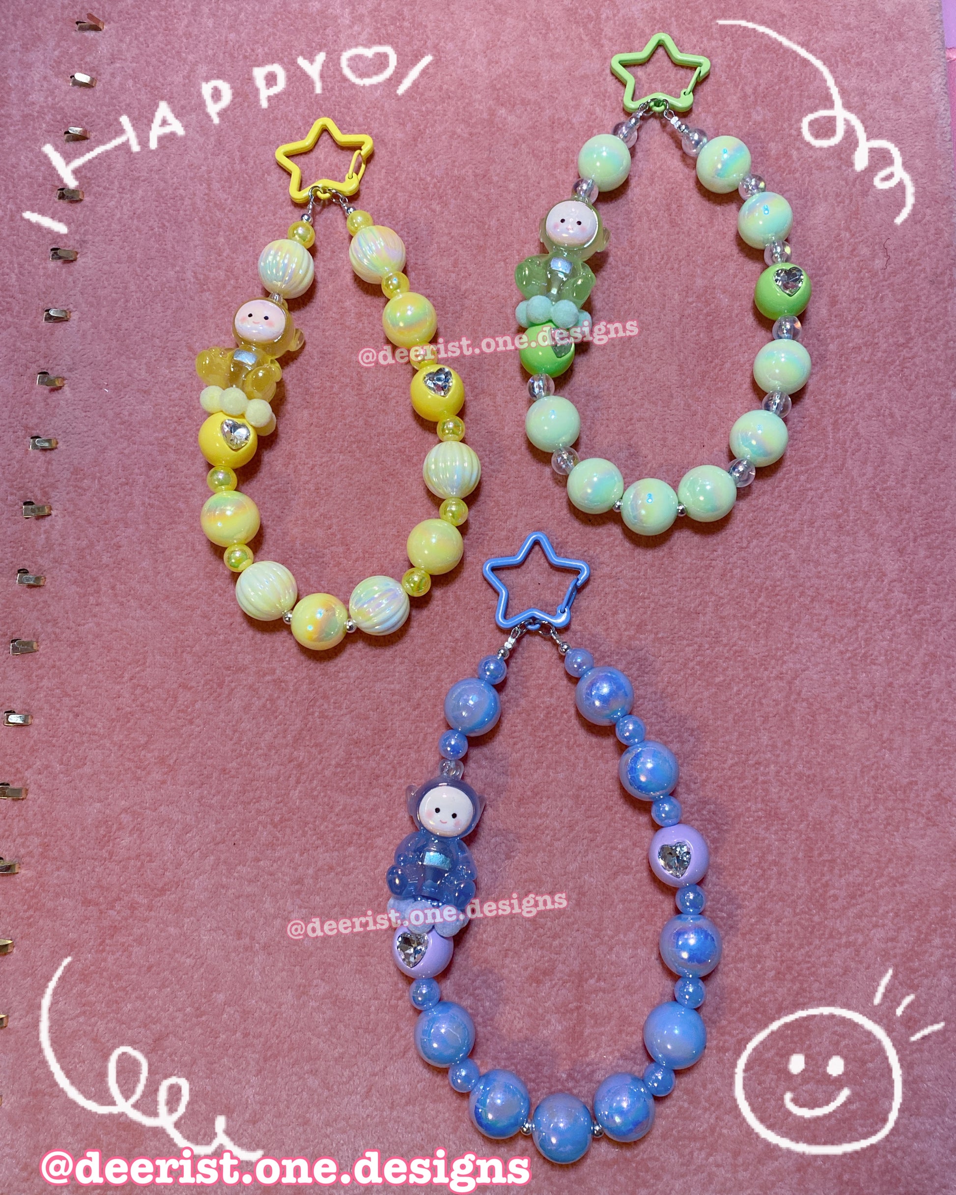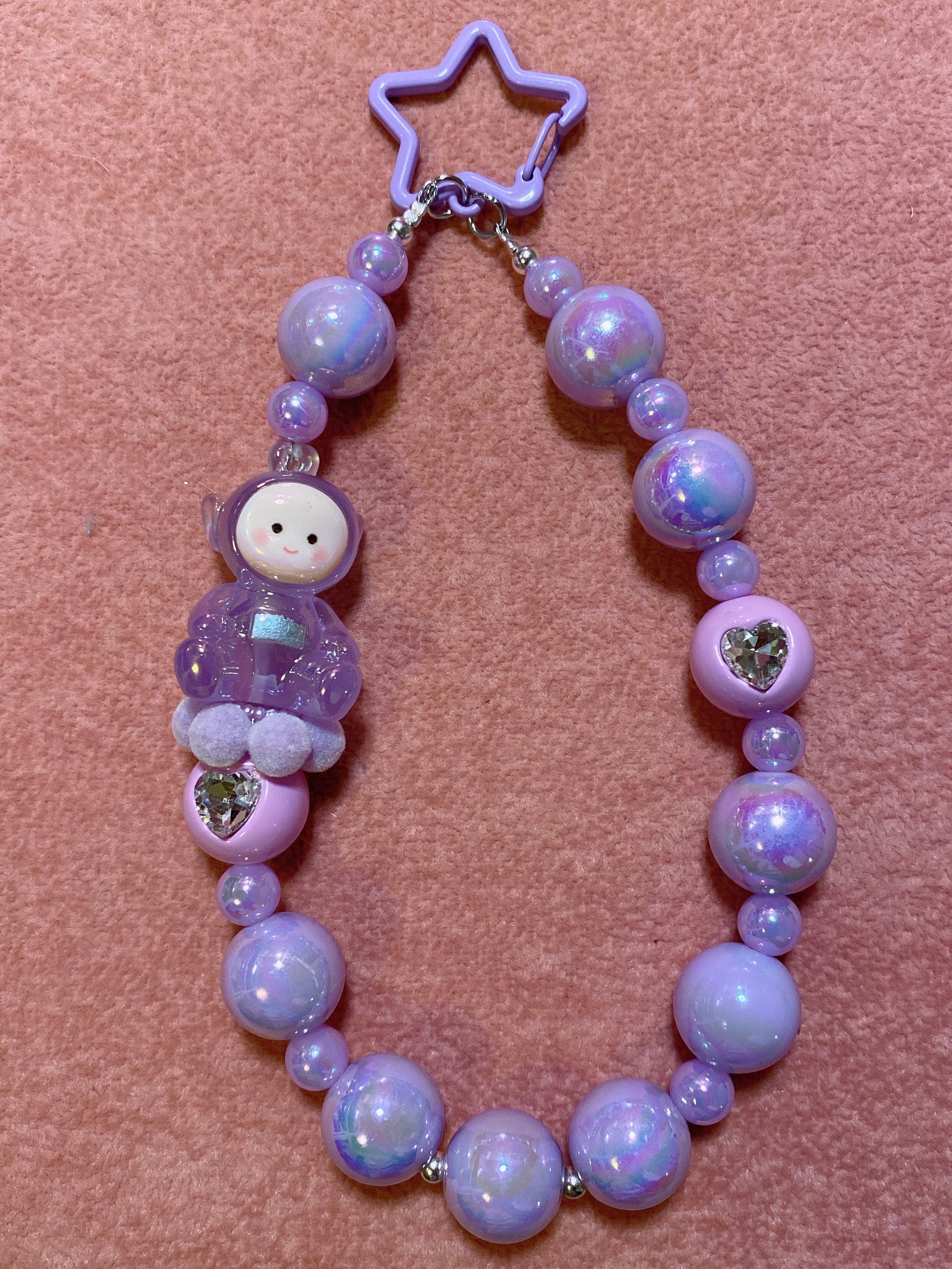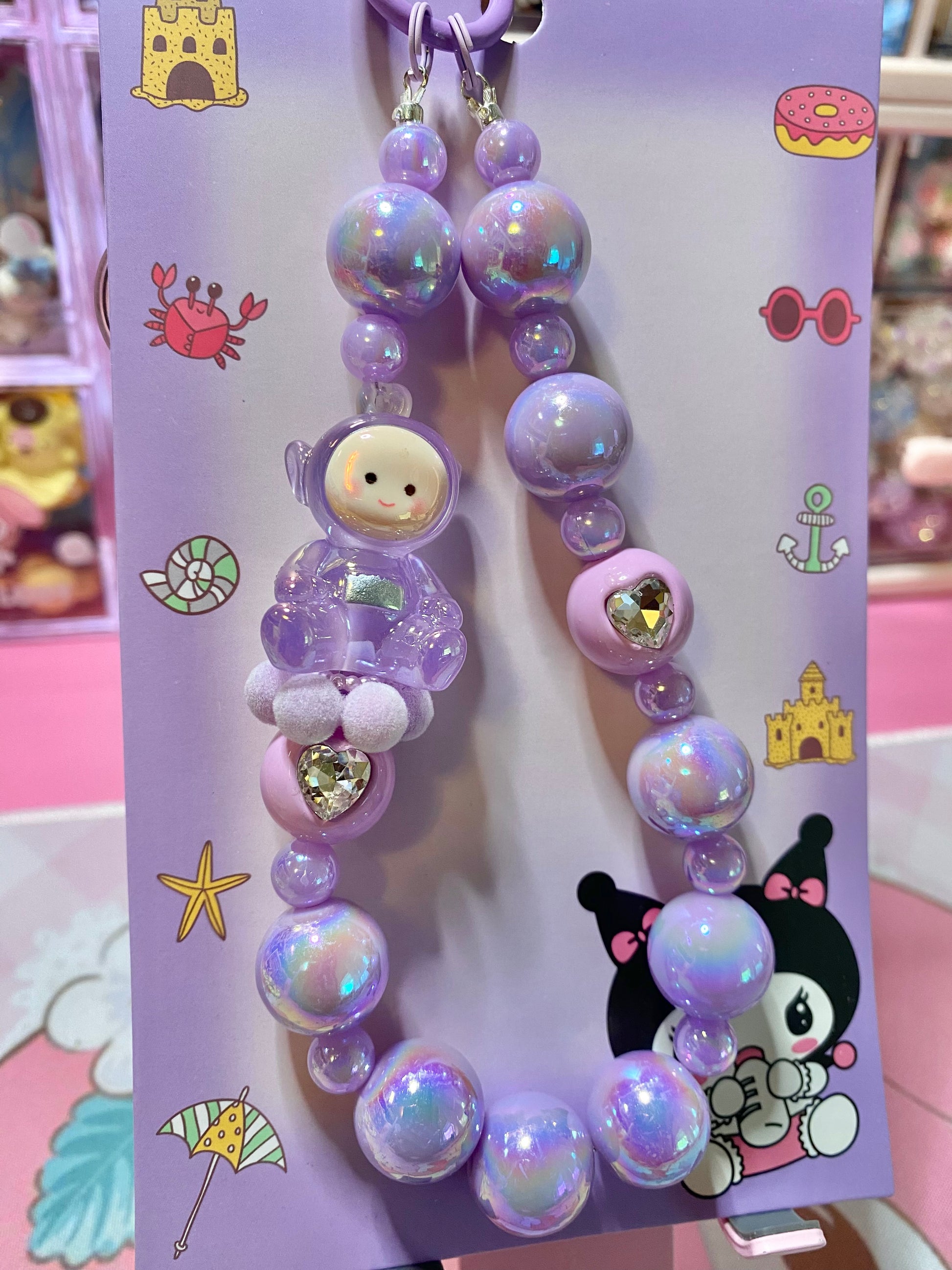 This keychain features a cute Tv Friend sitting on flocked bead on a hand arranged keychain attachment